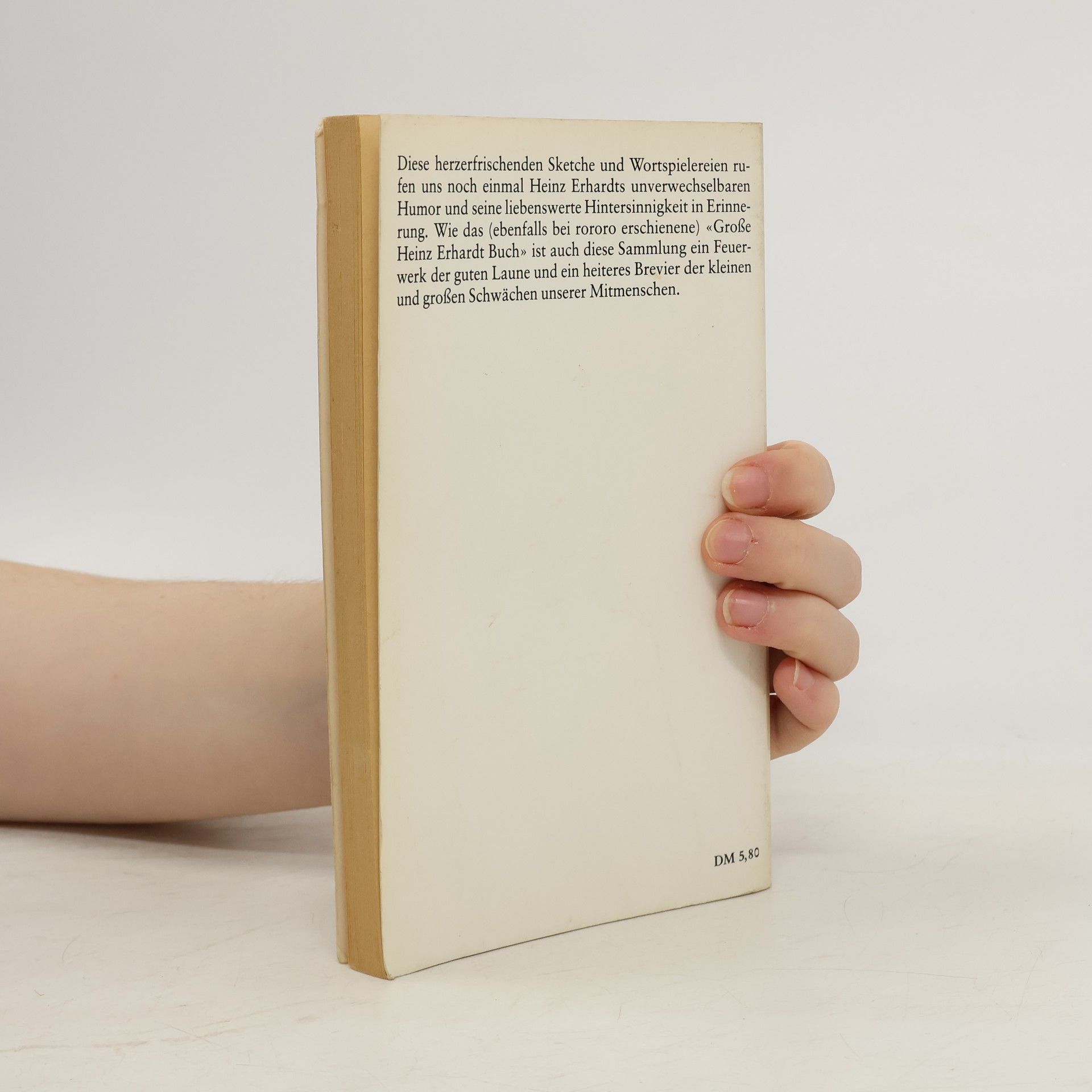 Diese herzerfrischenden Sketche und Wordspielereien rufen uns noch einmal Hein Erhardts unverwechselbaren Humor und seine liebenswerte Hintersinnigkeit in Erinnerung. Wie das „Große Heinz Erhardt Buch“ ist auch diese Sammlung ein Feuerwerk der guten Laune und ein heiteres Brevier der kleinen und großen Schwächen unserer Mittmenschen.