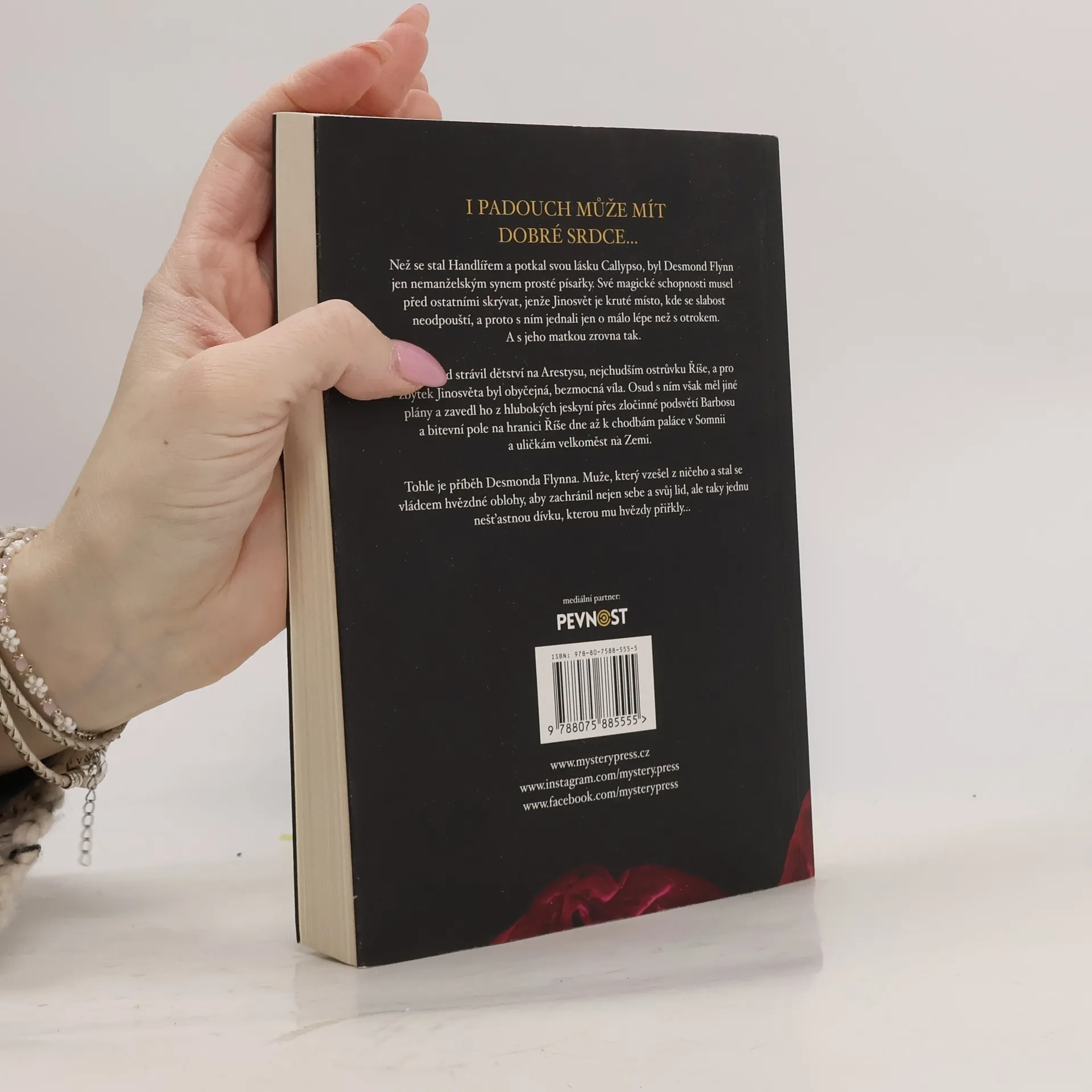 I PADOUCH MŮŽE MÍT DOBRÉ SRDCE Než se stal Handlířem a potkal svou lásku Callypso, byl Desmond Flynn jen nemanželským synem prosté písařky. Své magické schopnosti musel před ostatními skrývat, jenže Jinosvět je kruté místo, kde se slabost neodpouští, a proto s ním jednali jen o málo lépe než s otrokem. A s jeho matkou zrovna tak. Desmond strávil dětství na Arestysu, nejchudším ostrůvku Říše, a pro zbytek Jinosvěta byl obyčejná, bezmocná víla. Osud s ním však měl jiné plány a zavedl ho z hlubokých jeskyní přes zločinné podsvětí Barbosu a bitevní pole na hranici Říše dne až k chodbám paláce v Somnii a uličkám velkoměst na Zemi. Tohle je příběh Desmonda Flynna. Muže, který vzešel z ničeho a stal se vládcem hvězdné oblohy, aby zachránil nejen sebe a svůj lid, ale taky jednu nešťastnou dívku, kterou mu hvězdy přiřkly