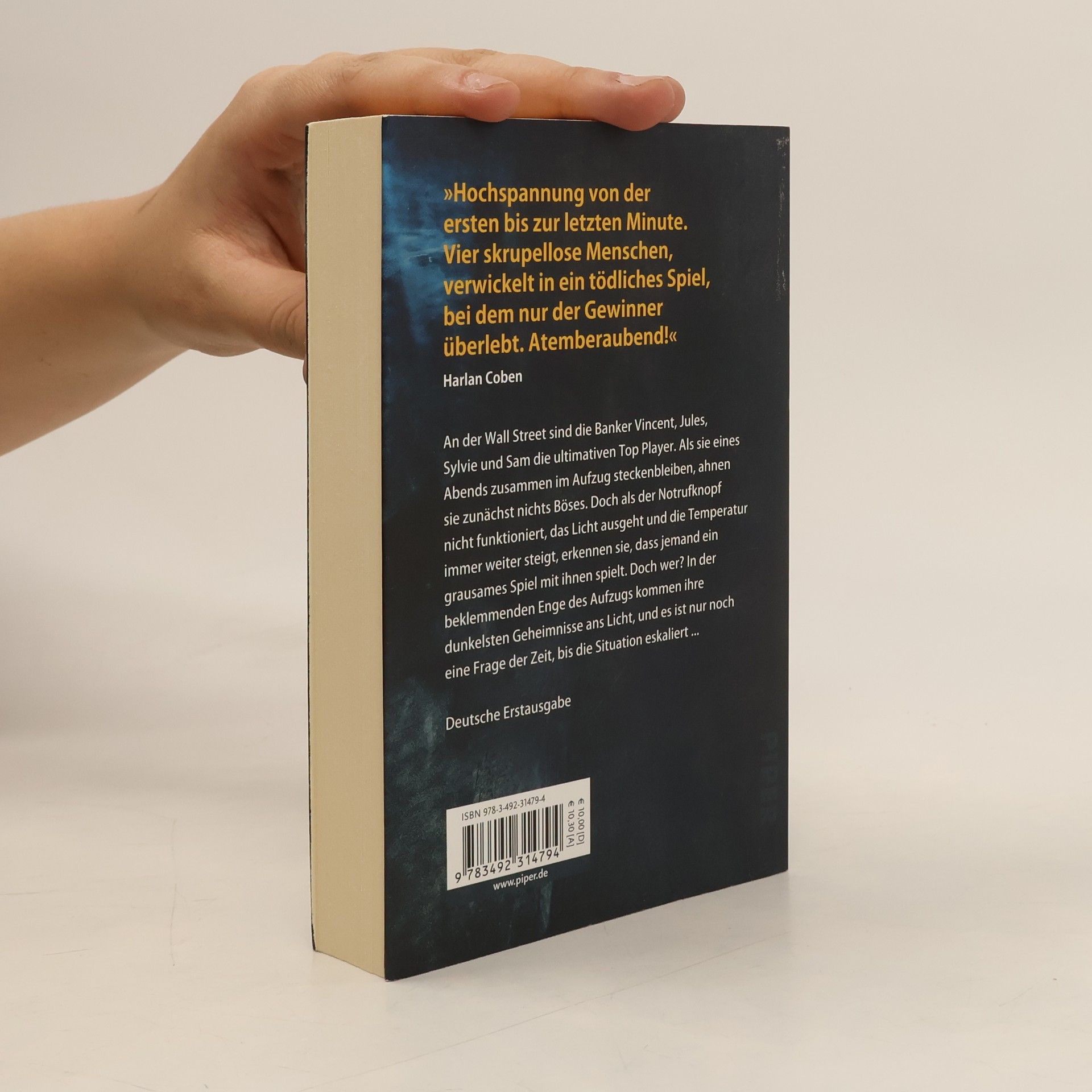 Atemberaubend: Ein Psychothriller, in dem ein Fahrstuhl zum Escape Room wird und nur der Gewinner überlebt Wohl jeder erfolgreiche Banker hat Dreck am Stecken. Doch was haben die vier unfreiwilligen Spieler verbrochen, um Teil des tödlichen Escape Games zu werden? Hochspannung für Fans von Gillian Flynn. In »The Escape Game – Wer wird überleben?« spielt jemand ein grausames Spiel um das Überleben. Plötzlich bleiben die Top-Banker Vincent, Jules, Sylvie und Sam im Aufzug stecken. Während die Temperatur immer weiter steigt, begreifen sie, dass sie Teil eines Spiels sind, bei dem es um ihr Überleben geht. Die dunkelsten Geheimnisse der vier skrupellosen Menschen kommen ans Licht, während ihnen klar wird, dass nur einer heil herauskommen wird. Doch wer hat sie in diese Lage gebracht und warum? »Fantastisch – eines meiner Lieblingsbücher des Jahres.« Lee Child Die Australierin Megan Goldin ist der neue Stern am Psychothriller-Himmel. Nach dem viel gelobten »The Wrong Girl – Die perfekte Täuschung« legt sie nun mit »The Escape Game – Wer wird überleben?« nach. Noch mitreißender und noch besser konzipiert, verspricht der Roman Spannung ab der ersten Seite »Hochspannung von der ersten bis zur letzten Minute. Vier skrupellose Menschen, verwickelt in ein tödliches Spiel, bei dem nur der Gewinner überlebt. Spannend und unvergesslich!« Harlan Coben Eine akute Bedrohung, die klaustrophobische Atmosphäre, das Wissen, dass nur einer überleben kann: Goldin weiß, aus welchem Stoff sie eine spannungsgeladene Geschichte weben muss. Sie lenkt die Sympathien des Lesers meisterhaft und setzt in dieser Neuerscheinung 2020 geschickt unerwartete Plot Twists. Eine klare Empfehlung für alle, die A. J. Finn oder Paula Hawkins mögen.