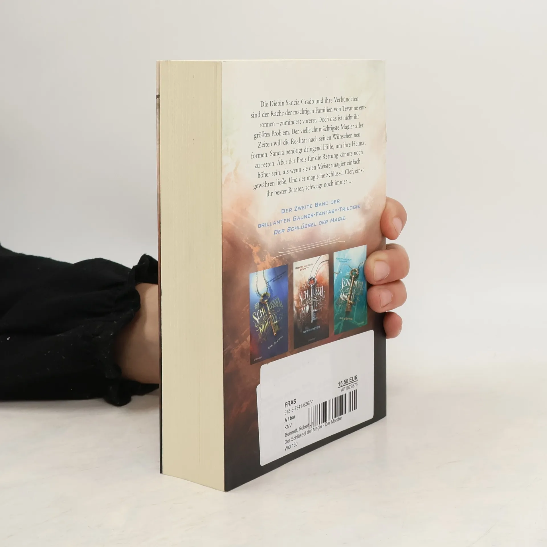 Ein Mensch, der die Magie entschlüsselt. Ein Magier, der die Welt erschüttert. Ein Meister, der den Tod besiegt. Die Diebin Sancia Grado und ihre Verbündeten haben ein eigenes Handelshaus gegründet. Das war ihre einzige Möglichkeit, nicht durch die mächtigen Familien von Tevanne einfach zu Verbrechern erklärt zu werden. Nun müssen sie sich gegen die etablierten Familien durchsetzen. Doch deren Rache ist nicht ihr größtes Problem. Der vielleicht mächtigste Magier der Vergangenheit ist ins Leben zurückgekehrt und will nun die Realität nach seinen Wünschen neu formen. Sancia und ihre Freunde benötigen dringend Unterstützung, wenn sie ihre Heimat retten wollen. Aber der magische Schlüssel Clef, einst ihr bester Berater, schweigt – und der Preis für andere Hilfe könnte noch höher sein, als wenn Sancia den Meistermagier einfach gewähren ließe … Die Trilogie Der Schlüssel der Magie : 1. Die Diebin 2. Der Meister 3. Die Götter