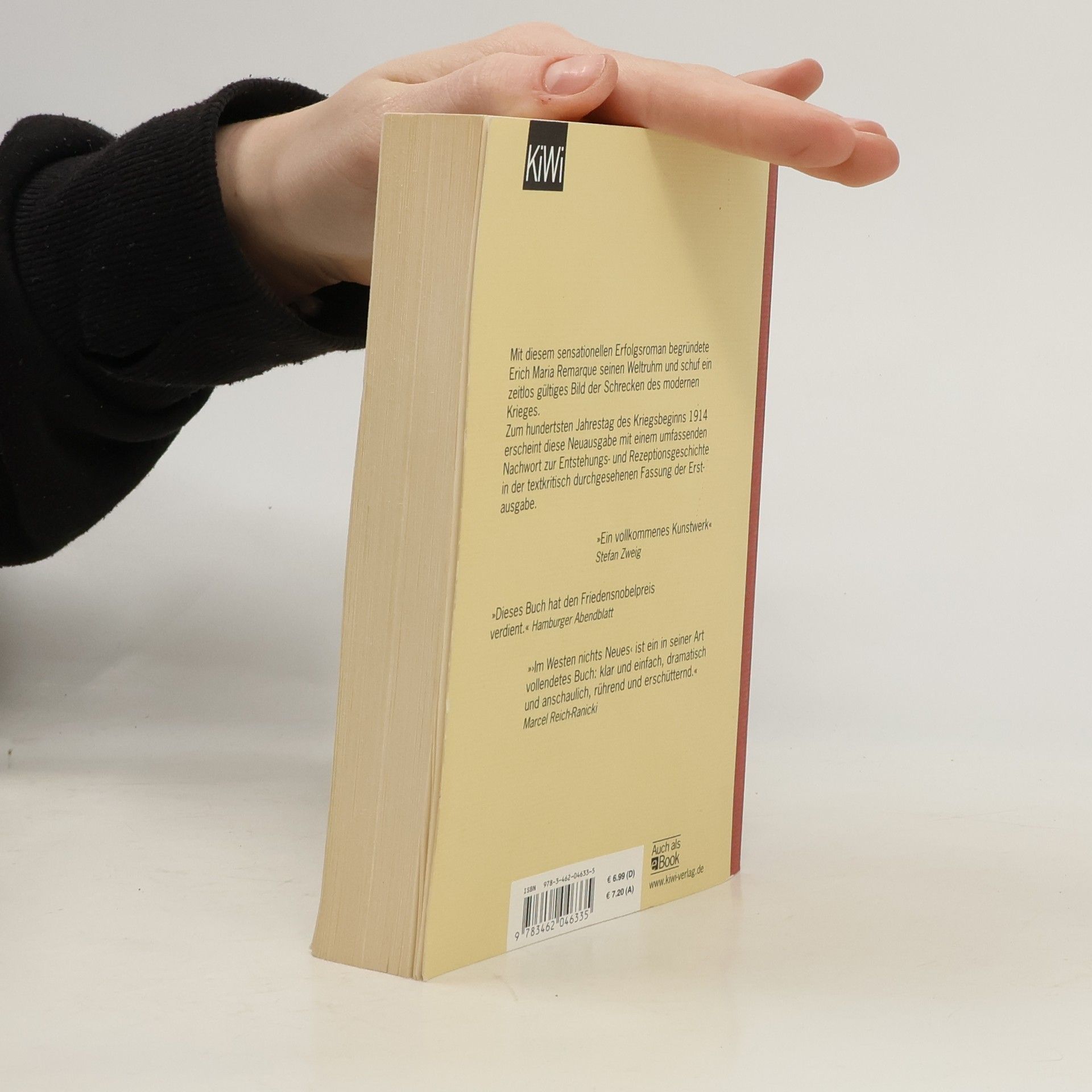 Der bedeutendste deutsche Roman zum Ersten Weltkrieg in einer Neuausgabe mit einem umfassenden Nachwort zur Entstehungs- und Rezeptionsgeschichte in der textkritisch durchgesehenen Fassung der Erstausgabe. Das Buch zum Oscar-prämierten Netflix-Film. Mit diesem Roman begründete Erich Maria Remarque seinen Weltruhm und schuf ein zeitlos gültiges Bild der Schrecken des modernen Krieges. Zum hundertsten Jahrestag des Kriegsbeginns 1914 erscheint eine besonders ausgestattete, mit einem Nachwort von Thomas F. Schneider, Leiter des Remarque-Friedenszentrums der Universität Osnabrück, zur Entstehungs- und Rezeptionsgeschichte versehene Sonderausgabe. Die Geschichte des neunzehnjährigen Paul Bäumer, der als ahnungsloser Kriegsfreiwilliger von der Schulbank an die Front kommt, ist inzwischen Allgemeingut. Auch bei der erneuten Lektüre ist der Eindruck jedoch wieder erschütternd: Wie Bäumer statt der erhofften Kriegsbegeisterung und eines kurzen Abenteuers die ganze Brutalität des Gemetzels und das sinnlose Sterben seiner Kameraden erlebt, ist anrührend und empörend. »Ein vollkommenes Kunstwerk und unzweifelhafte Wahrheit« Stefan Zweig