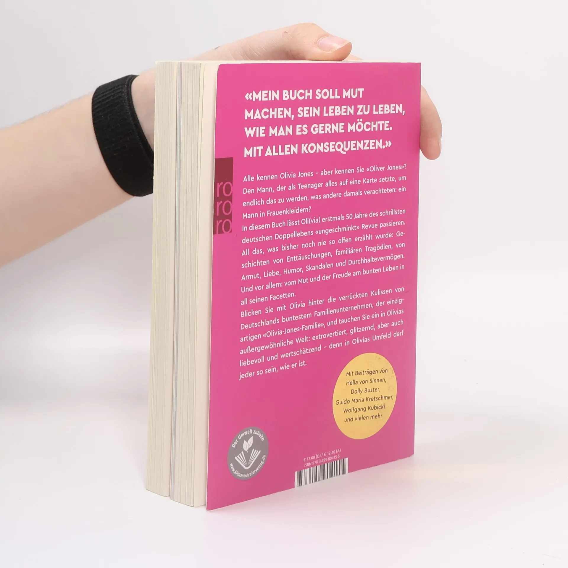 «Mein Buch soll Mut machen, sein Leben zu leben, wie man es gerne möchte. Mit allen Konsequenzen.» Alle kennen Olivia Jones – aber kennen Sie «Oliver Jones»? Den Mann, der als Teenager alles auf eine Karte setzte, um endlich das zu werden, was andere damals verachteten: ein Mann in Frauenkleidern? In diesem Buch lässt Oli(via) erstmals 50 Jahre des schrillsten deutschen Doppellebens «ungeschminkt» Revue passieren. All das, was bisher noch nie so offen erzählt wurde: Geschichten von Enttäuschungen, familiären Tragödien, von Armut, Liebe, Humor, Skandalen und Durchhaltevermögen. Und vor allem: vom Mut und der Freude am bunten Leben in all seinen Facetten. Blicken Sie mit Olivia hinter die verrückten Kulissen von Deutschlands buntestem Familienunternehmen, der einzigartigen «Olivia-Jones-Familie», und tauchen Sie ein in Olivias außergewöhnliche Welt: extrovertiert, glitzernd, aber auch liebevoll und wertschätzend – denn in Olivias Umfeld darf jeder so sein, wie er ist. Mit Beiträgen von Hella von Sinnen, Dolly Buster, Guido Maria Kretschmer, Wolfgang Kubicki und vielen mehr.