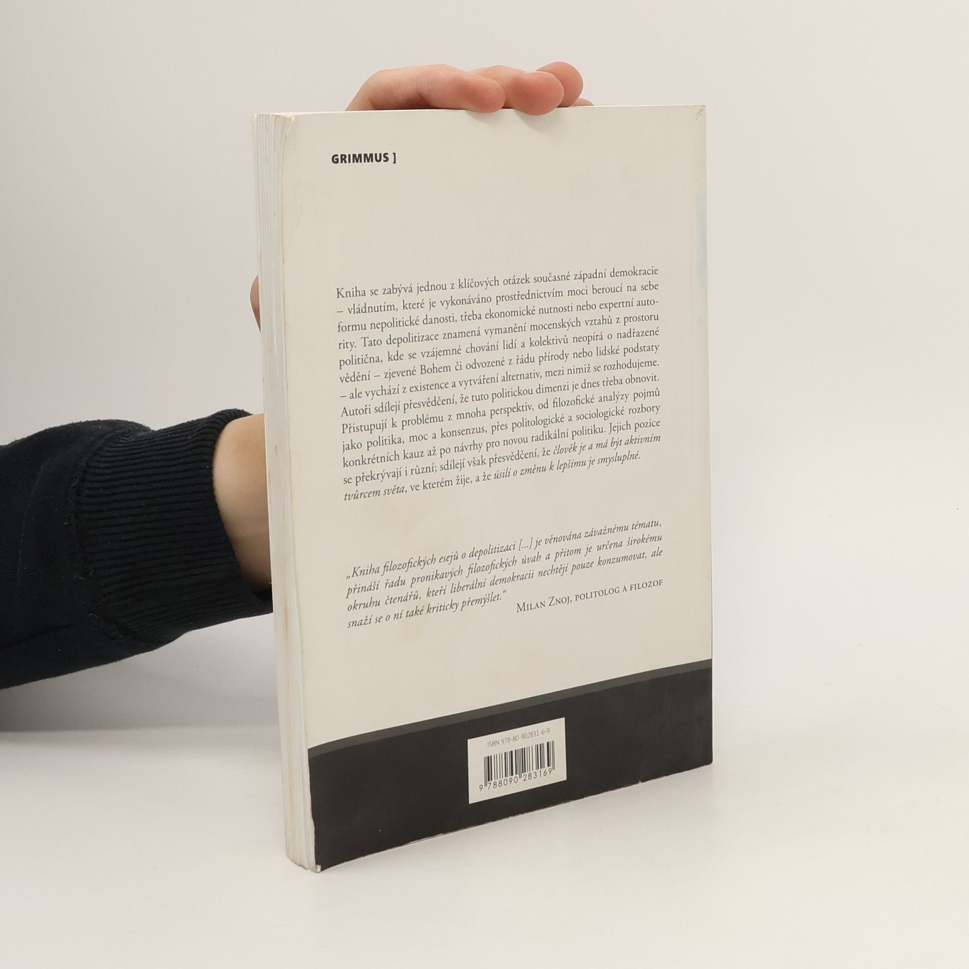 Kniha se zabývá jednou z klíčových otázek současné západní demokracie – vládnutím, které je vykonáváno prostřednictvím moci beroucí na sebe formu nepolitické danosti, třeba ekonomické nutnosti nebo expertní autority. Tato depolitizace znamená vymanění mocenských vztahů z prostoru politična, kde se vzájemné chování lidí a kolektivů neopírá o nadřazené vědění – zjevené Bohem či odvozené z řádu přírody nebo lidské podstaty – ale vychází z existence a vytváření alternativ, mezi nimiž se rozhodujeme. Autoři sdílejí přesvědčení, že tuto politickou dimenzi je dnes třeba obnovit. Přistupují k problému z mnoha perspektiv, od filosofické analýzy pojmů jako politika, moc a konsenzus, přes politologické a sociologické rozbory konkrétních kauz až po návrhy pro novou radikální politiku. Jejich pozice se překrývají i různí; sdílejí však přesvědčení, že člověk je a má být aktivním tvůrcem světa, ve kterém žije, a že úsilí o změnu k lepšímu je smysluplné.Na knize spolupracovali: Václav Bělohradský, Pavel Barša, Michael Hauser, Václav Magid, Petr Schnur, Ondřej Slačálek, Tereza Stöckelová, Martin Škabraha, Mirek Vodrážka.