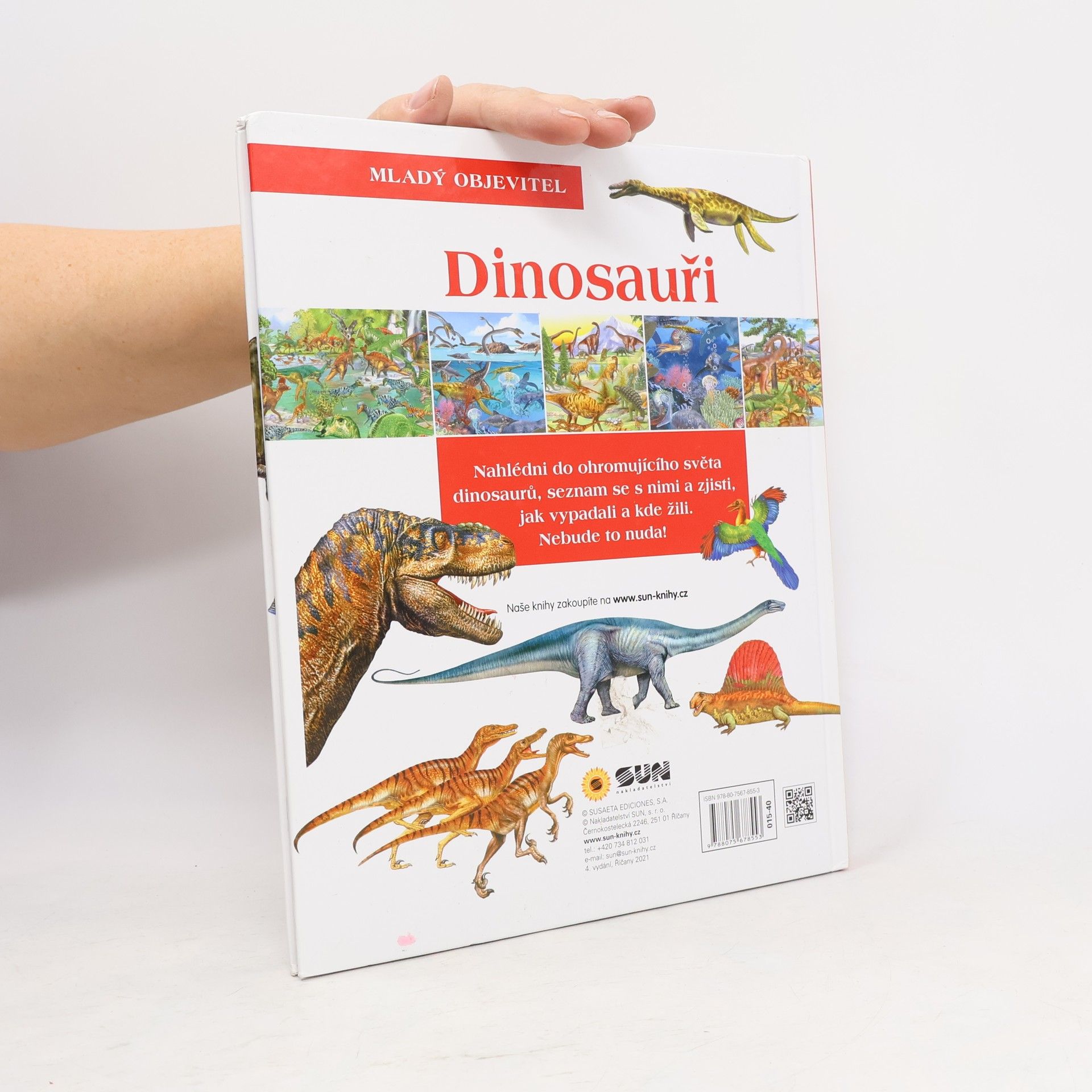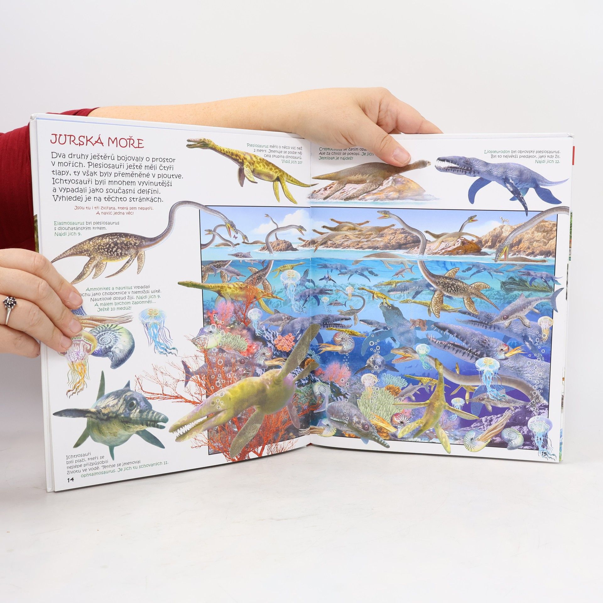 Krásná kniha plná hledání a překvapení. Děti se dozvědí spoustu zajímavých informací o pravěku, dinosaurech i zkáze tohoto období. Na obrázcích pak vyhledají předměty, které tam nepatří, ale také ty, jež se světa dinosaurů týkají.