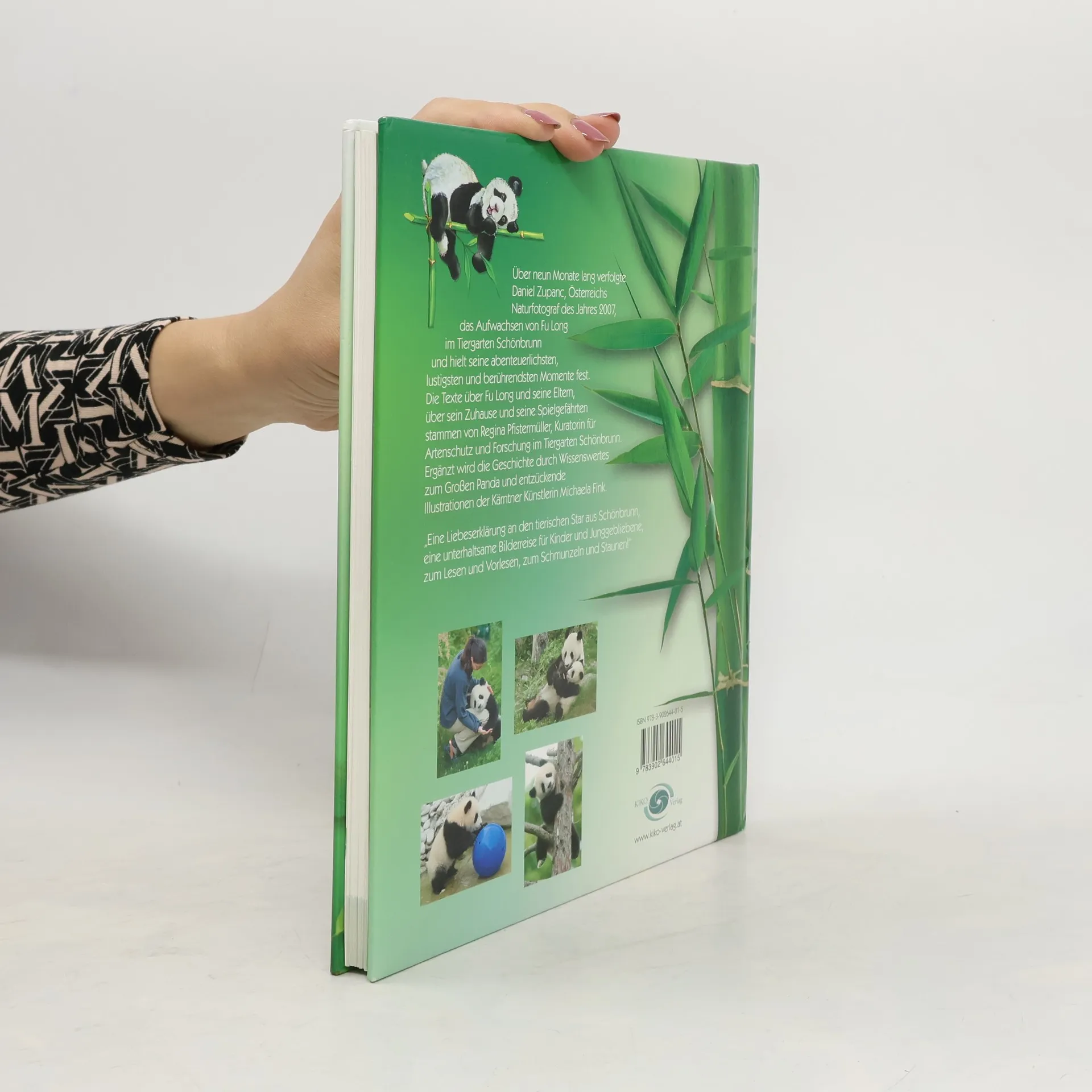 Über neun Monate lang verfolgte Daniel Zupanc, Österreichs Naturfotograf des Jahres 2007, das Aufwachsen von Fu Long im Tiergarten Schönbrunn und hielt seine schönsten, seine lustigsten, seine abenteuerlichsten und berührendsten Momente fotografisch fest. In einem einzigartigen Bilderbuch sind sie nun für pandabegeisterte Kinder und Erwachsene in einer Geschichte über sein Leben zusammengefasst. Die Texte über Fu Long und seine Eltern, über sein Zuhause und seine Spielgefährten stammen von Regina Pfistermüller, Kuratorin für Artenschutz und Forschung im Tiergarten Schönbrunn. Ergänzt wird die Geschichte durch Wissenswertes zum großen Panda und entzückenden Illustrationen der Kärntner Künstlerin Michaela Fink, die Fu Long als Fußballspieler, Bergsteiger oder beim Waschen seines Pandafells zeigen. „Eine Liebeserklärung an den tierischen Star aus Schönbrunn, ein unterhaltsame Bilderreise für Kinder und Junggebliebene, zum Lesen und Vorlesen, zum Lachen und Staunen!“
