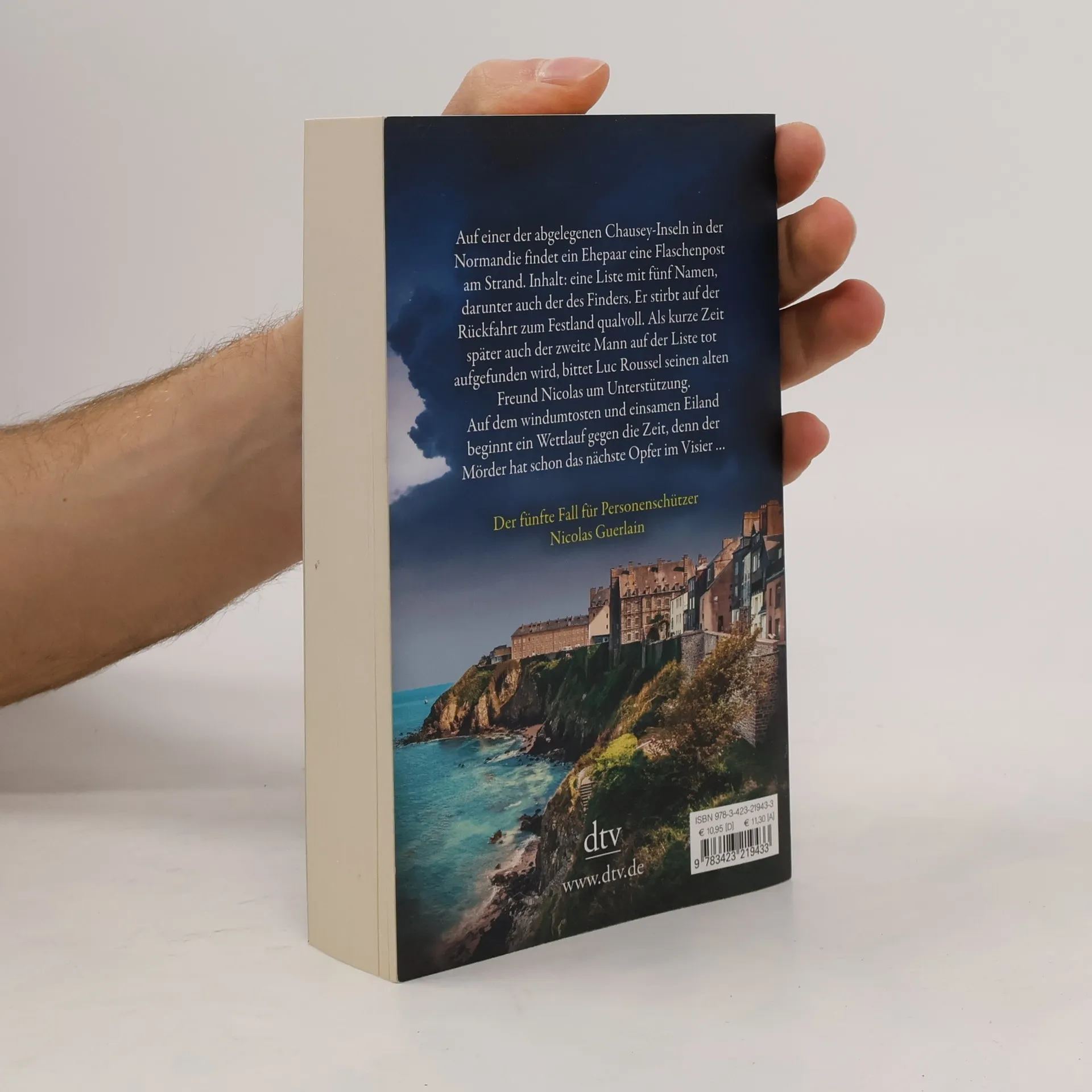 Eine einsame Insel. Eine mysteriöse Todesliste. Ein Wettlauf gegen die Zeit. Windumtost und abgelegen vor der rauen Küste der Normandie: Chausey, einst ein Versteck für Schmuggler und Piraten, ist Schauplatz einer rätselhaften Mordserie. Sie beginnt mit dem Fund einer Flaschenpost, die die Wellen an den Strand spülen. Der Inhalt: Eine Liste mit fünf Namen. Der Mann, der die Flaschenpost entdeckt, steht auch darauf - und stirbt qualvoll bei der Rückfahrt zum Festland. Nicolas Guerlain, Personenschützer der französischen Regierung, versucht verzweifelt, die anderen Personen auf der Liste ausfindig zu machen und gerät dabei in tödliche Gefahr: Denn er selbst steht ebenfalls auf der Liste des Mörders. Es wird der persönlichste und schwierigste Fall für den toughen Franzosen. Und das ausgerechnet, während die Beziehung zu seiner großen Liebe Julie zu zerbrechen droht.