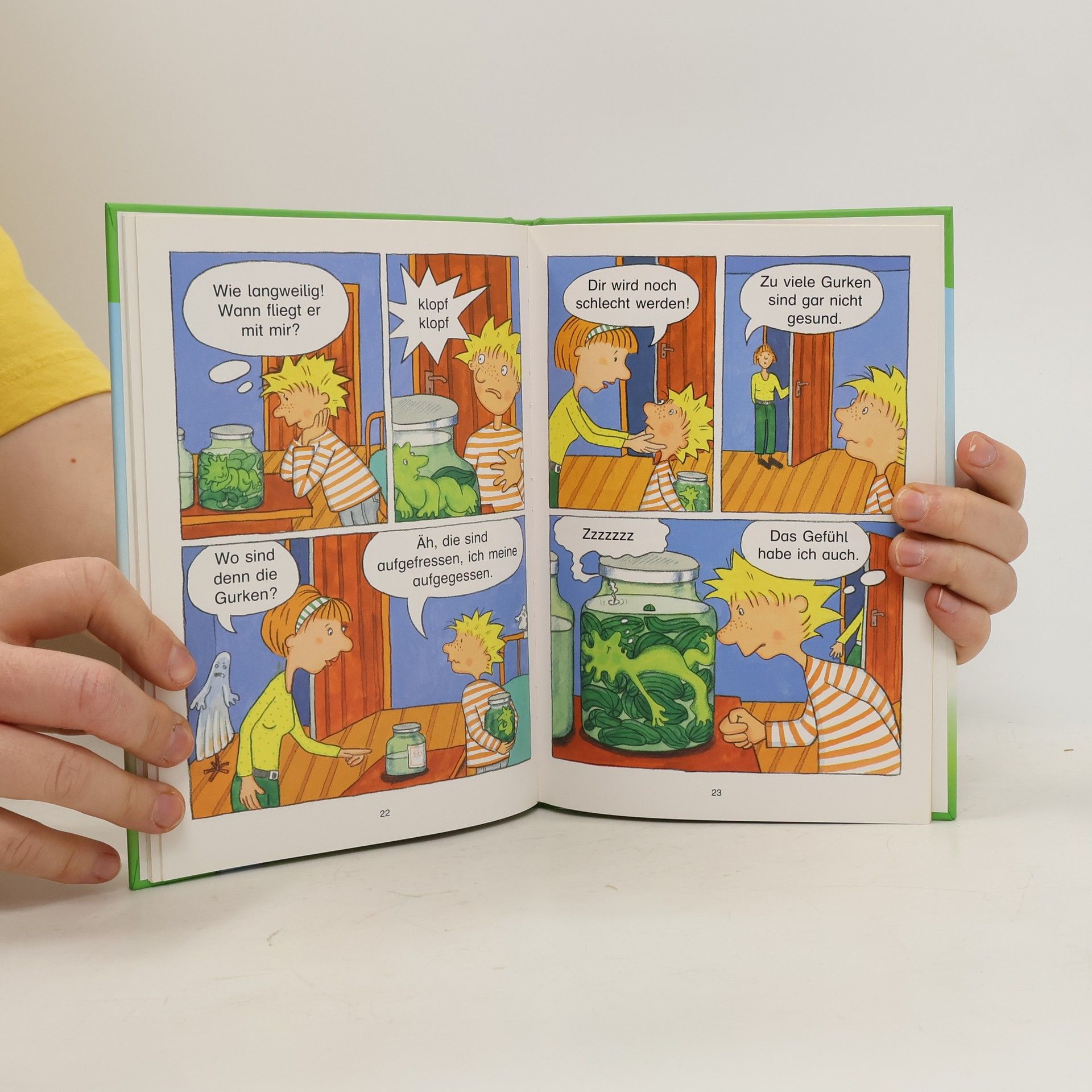 Der Gurkengeist, der in Willis Kühlschrank lauert, ist anspruchsvoll und drückt sich obendrein vor sämtlichen Gespensterverpflichtungen. Höchste Zeit für Willi, den lästigen Gurkerich wieder loszuwerden.