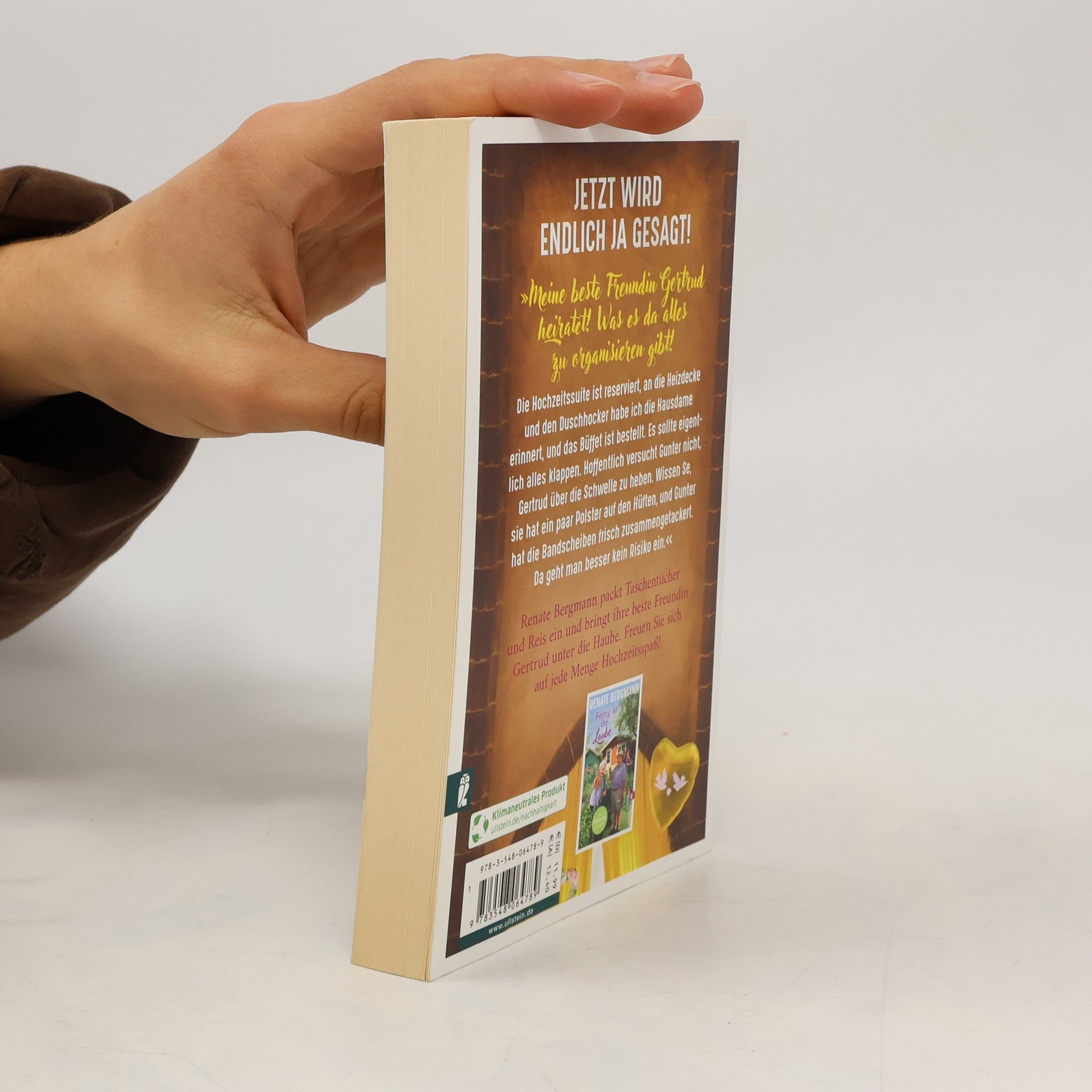 Jetzt wird endlich ja gesagt! »Ich dachte ja immer, das nächste Mal, dass ich mit meiner besten Freundin Gertrud in der Kirche sein würde, wäre auf einer unserer Beerdigungen. Aber jetzt gibt es einen viel schöneren Anlass: Sie heiratet nämlich! Was da alles zu organisieren ist! Wissen Se, Gertrud ist 82 wie ich. Da bin ich Brautjungfer und Ersatzbrautmutter in einem. Ich führe sie auch morgen zum Altar. Ja, auf Renate Bergmann ist Verlass! Der Frau Schlode, die mit ihrem Kinderchor jeden Zeitplan bei Festen durcheinanderbringt, habe ich eine falsche Kirche und ein falsches Datum gesagt, hihi! Die Hochzeitssuite ist reserviert, an die Heizdecke habe ich die Hausdame erinnert und das Büffet ist bestellt. Es sollte eigentlich alles klappen … aber wann klappt schon alles? Hoffentlich versucht Gunter nicht, Gertrud über die Schwelle zu heben. Wissen Se, sie hat ein paar Polster auf den Hüften, und Gunter hat die Bandscheiben frisch zusammengetackert. Da geht man besser kein Risiko ein.« Renate packt die Taschentücher und den Reis ein und bringt ihre beste Freundin Gertrud unter die Haube. Freuen Sie sich auf jede Menge Hochzeitsspaß!