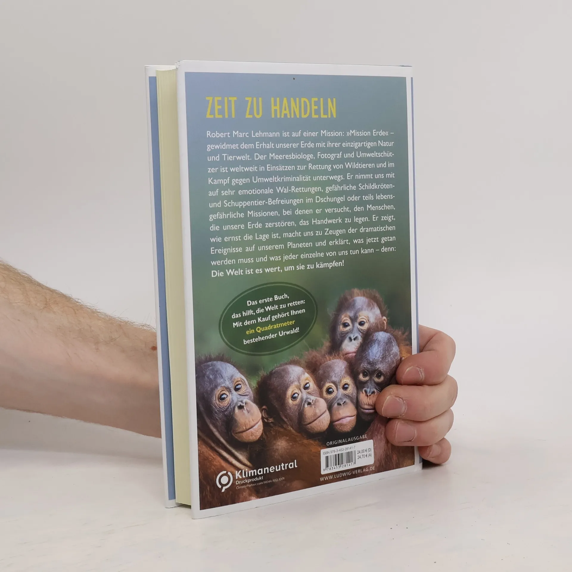 Zeit zu handeln Robert Marc Lehmann ist auf einer Mission: »Mission Erde« - gewidmet dem Erhalt unserer Erde mit ihrer einzigartigen Natur und Tierwelt. Der Meeresbiologe, Fotograf und Umweltschützer ist weltweit in Einsätzen zur Rettung von Wildtieren und im Kampf gegen Umweltkriminalität unterwegs. Er nimmt uns mit auf sehr emotionale Wal-Rettungen, gefährliche Schildkröten- und Schuppentier-Befreiungen im Dschungel oder teils lebensgefährliche Missionen, bei denen er versucht, den Menschen, die unsere Erde zerstören, das Handwerk zu legen. Er zeigt, wie ernst die Lage ist, macht uns zu Zeugen der dramatischen Ereignisse auf unserem Planeten und erklärt, was jetzt getan werden muss und was jeder einzelne von uns tun kann – denn: Die Welt ist es wert, um sie zu kämpfen! Das erste Buch, das hilft, die Welt zu retten: Mit dem Kauf gehört Ihnen ein Quadratmeter bestehender Urwald! Ausstattung: mit Bildteil, 4c