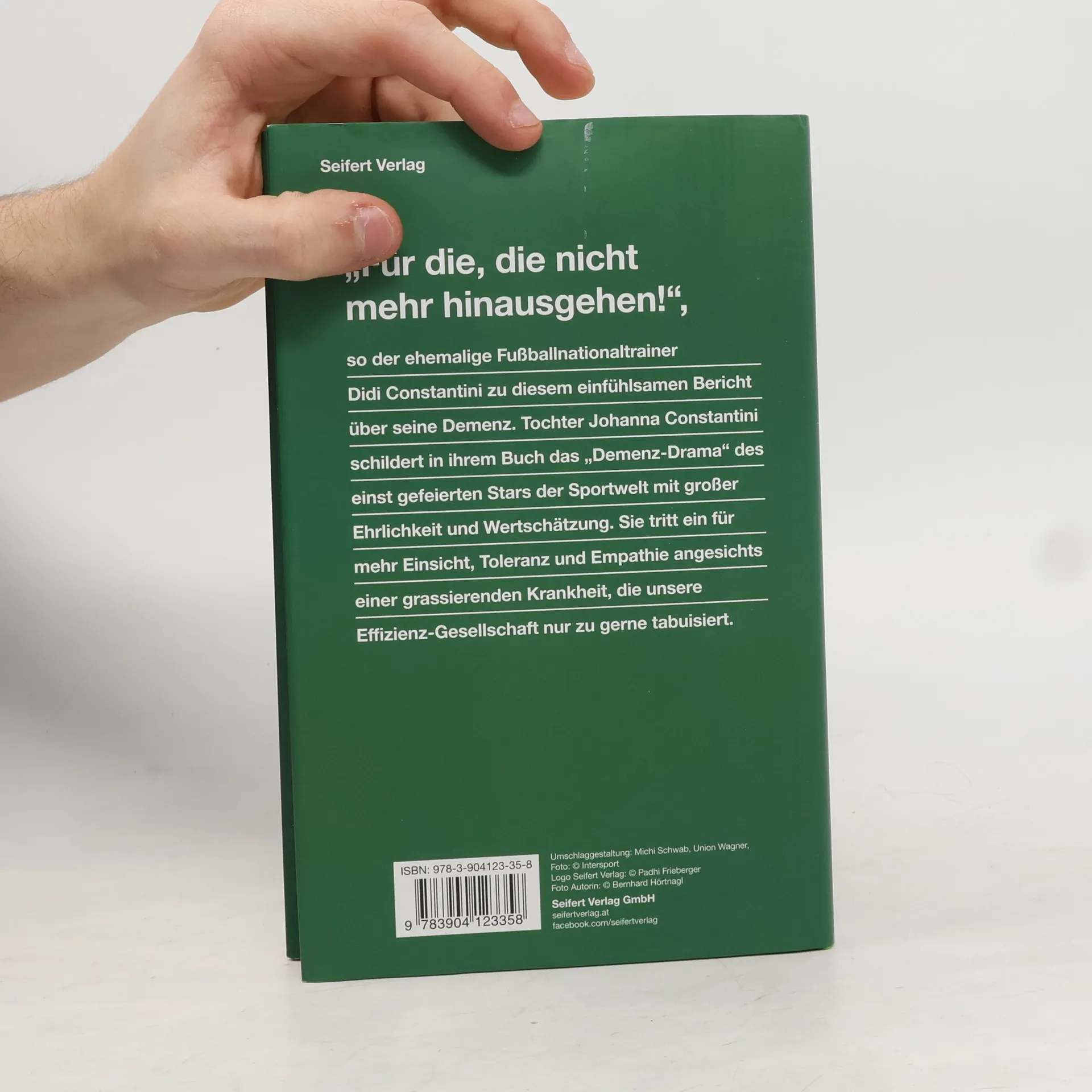 Am 4. Juni 2019 fährt der ehemalige ÖFB-Fußballnationaltrainer Didi Constantini auf der Brenner-Autobahn entgegen der Fahrtrichtung und verursacht einen Geisterfahrerunfall. Dieser offenbart ein „Demenz-Drama“, in dessen Zentrum mit Didi Constantini ein ehemals gefeierter Star und Liebling der Sportwelt steht – und mit ihm seine Familie. Ein knappes Jahr später fasst sich Tochter Johanna ein Herz und beginnt die Geschichte dieser Demenz niederzuschreiben. In ihrem ergreifenden Buch gewährt sie Einblicke in persönliche Strategien, schildert die Karriere ihres Vaters, seinen Rückzug aus dem Fußballgeschehen und die Herausforderungen, die eine Demenzerkrankung nicht nur für den Betroffenen selbst, sondern auch für seine Angehörigen mit sich bringt. Aber Johanna Constantini tritt nicht nur als Tochter für ihren Vater ein, sondern auch als Klinische Psychologin für all jene Betroffenen und deren Familien, denen weniger Beachtung geschenkt wird. In einer „Effizienz- Gesellschaft“, in der die Bereitschaft zur Empathie für Demenzkranke auf der Strecke zu bleiben droht, drängt sie auf mehr „Demenzfreundlichkeit“, um Demenzkranke eben nicht ins Abseits zu stellen. „Damit auch andere weiter rausgehen“, wie es Didi Constantini formuliert, der die Veröffentlichung dieses Buches vorbehaltlos unterstützt.