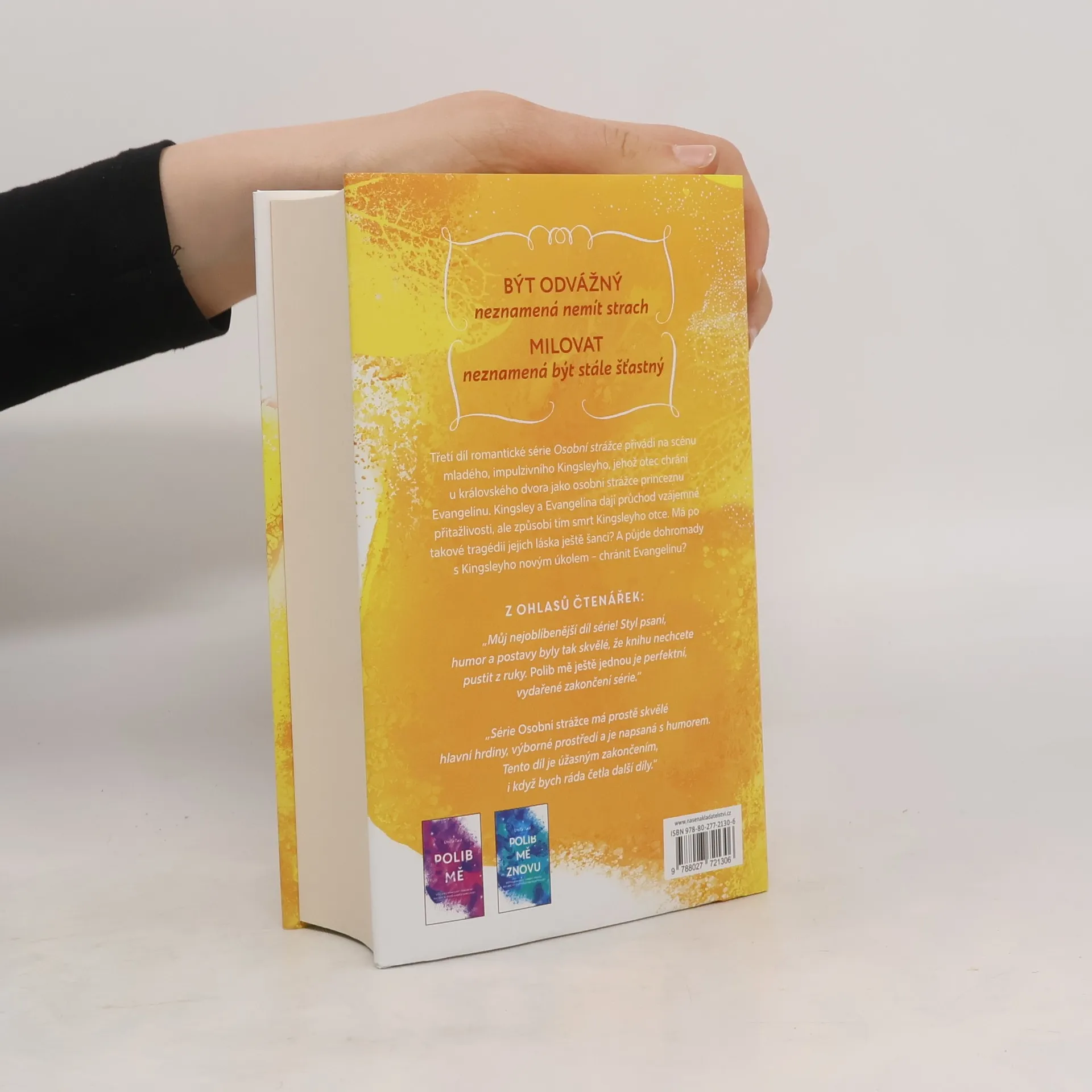Být odvážný neznamená nemít strach. A milovat neznamená být neustále šťastný. V budoucnu i ty, i já nejspíš někomu ublížíme – tomu se nedá zabránit. Ale vím, že když zavřu oči a budu volně padat, budeš tam a chytíš mě. Proto dovol, abych já byla ta, která chytí tebe. A budeš-li si to přát, můžeme padat spolu, pokud mě při tom budeš držet za ruku. Když se Evangelina seznámí s jedním z královských bodyguardů, rozvíří to její veškerý citový svět. Impulzivní Kinsgley přitom naprosto nezapadá do královského dvora a dokonce si musí odsedět trest. Ačkoli už si nechce způsobovat další potíže, princezninu šarmu přesto neunikne. Rozvine se dobrodružný flirt, ovšem za vysokou cenu – když je Eva napadena, chrání ji jako bodyguard Kingsleyův otec a zaplatí životem. A Eva a Kingsley zlomeným srdcem. Když se jejich cesty rozejdou, Eva je přesvědčená, že už ho nikdy nespatří, jenže poté převezme Kingsley otcův bývalý post a dostane za úkol chránit Evin život.