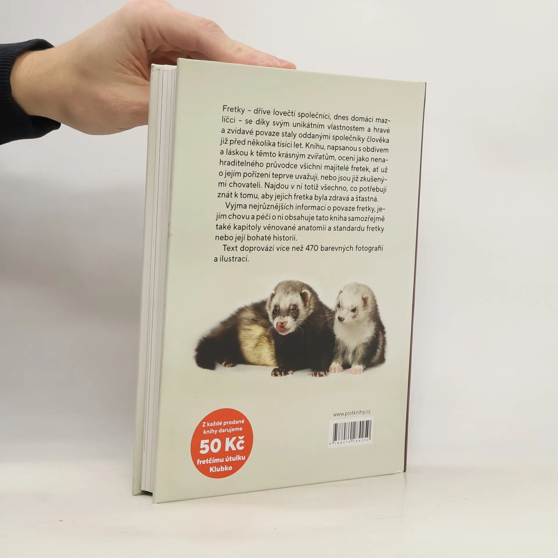 Nenahraditelný průvodce pro všechny majitele fretek. Vyjma nejrůznějších informací o povaze fretky, jejím chovu a péči o ní obsahuje tato kniha také kapitoly věnované anatomii a standardu fretky nebo její bohaté historii. Text doprovází více než 470 barevných fotografií a ilustrací.