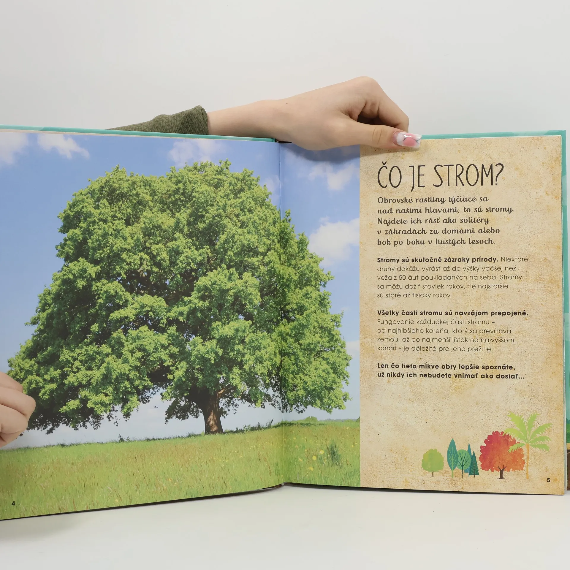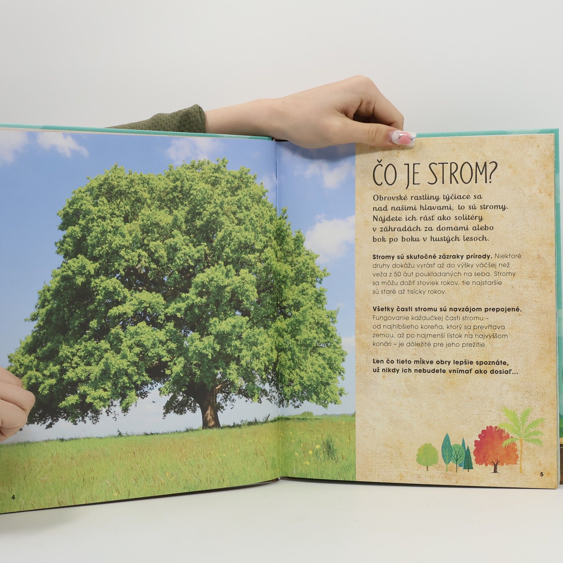 Vkročte do lesa a objavte tajomný svet stromov. Vedeli ste, že si pod zemou posielajú správy? Počuli ste o tom, že sa starajú o svoju rodinu? Za stromom sa skrýva oveľa viac, než sa zdá... V tejto nádherne ilustrovanej knižke získate množstvo zaujímavých informácií nielen o stromoch z celého sveta, ale aj o obyvateľoch lesa. Dozviete sa, ako stromy navzájom komunikujú a varujú pred predátormi, ako zaznamenávajú minulosť a predvídajú budúcnosť. Zistíte, čo všetko pre nás stromy robia a ako ich poškodzujeme znečistením a odlesňovaním. Našťastie nie je príliš neskoro, aby sme s tým niečo urobili, môžeme napríklad používať recyklovaný papier alebo vysadiť svoj vlastný strom! Pre čitateľov od 6 rokov