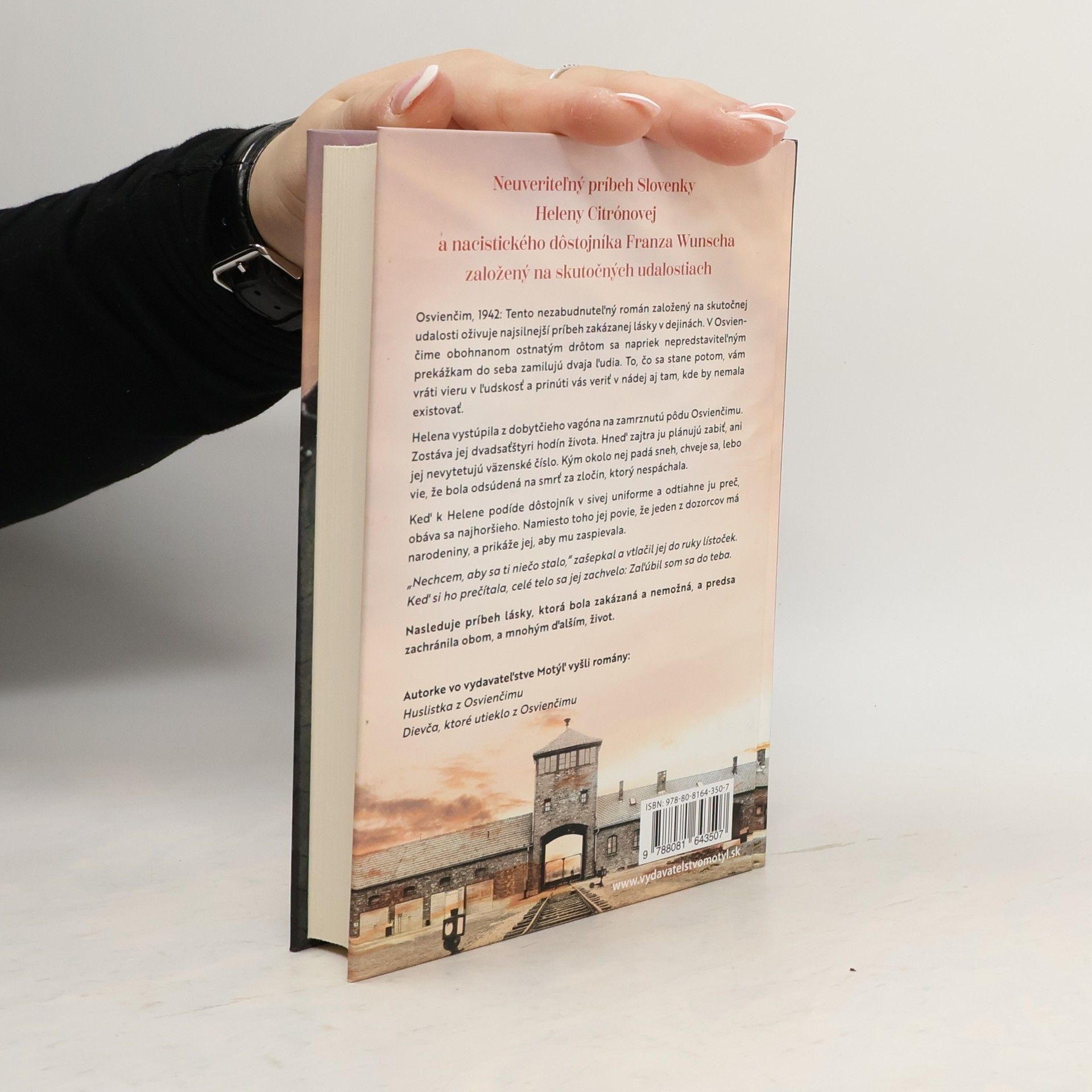 Neuveriteľný príbeh Slovenky Heleny Citrónovej a nacistického dôstojníka Franza Wunsche založený na skutočných udalostiach Osvienčim, 1942: Tento nezabudnuteľný román založený na skutočnej udalosti oživuje najsilnejší príbeh zakázanej lásky v dejinách. V Osvienčime obohnanom ostnatým drôtom sa napriek nepredstaviteľným prekážkam do seba zamilujú dvaja ľudia. To, čo sa stane potom, vám vráti vieru v ľudskosť a prinúti vás veriť v nádej aj tam, kde by nemala existovať. Helena vystúpila z dobytčieho vagóna na zamrznutú pôdu Osvienčimu. Zostáva jej dvadsaťštyri hodín života. Hneď zajtra ju plánujú zabiť, ani jej nevytetujú väzenské číslo. Kým okolo nej padá sneh, chveje sa, lebo vie, že bola odsúdená na smrť za zločin, ktorý nespáchala. Keď k Helene podíde dôstojník v sivej uniforme a odtiahne ju preč, obáva sa najhoršieho. Namiesto toho jej povie, že jeden z dozorcov má narodeniny, a prikáže jej, aby mu zaspievala. „Nechcem, aby sa ti niečo stalo,“ zašepkal a vtlačil jej do ruky lístoček. Keď si ho prečítala, celé telo sa jej zachvelo: Zaľúbil som sa do teba. Nasleduje príbeh lásky, ktorá bola zakázaná a nemožná, a predsa zachránila obom, a mnohým ďalších, život.