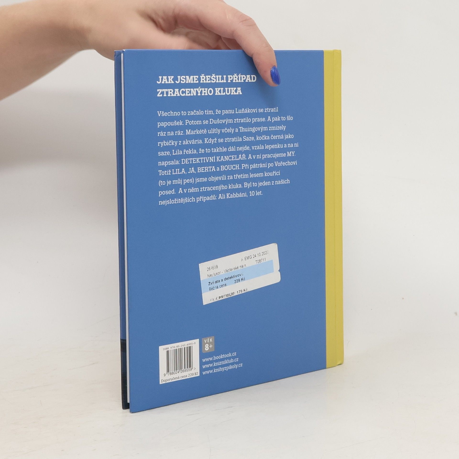 Nejdřív se ztratil panu Luňákovi papoušek. Potom se ztratilo Dušovým prase. To se stalo v pondělí. A pak to šlo ráz na ráz. Markétě ulítly včely a Thuingovým zmizely rybičky z akvária. Když se pak ve středu ztratila černá kočka Saze, tak Lila řekla, že to takhle dál nejde, že se toho musíme ujmout. A hned vzala lepenku a na ni napsala: DETEKTIVNÍ KANCELÁŘ. A v ní pracujeme MY. Totiž LILA, JÁ, BERTA a BOUCH. Při pátrání po Vořechovi (to je můj pes) jsme objevili za třetím lesem kouřící posed. A v něm ztracenýho kluka. Byl to jeden z našich nejsložitějších případů: Ali Kabbáni, 10 let. Vtipně a svižně vyprávěný příběh o nevážných věcech, ale i jedné vážné, ilustrovala Galina Miklínová.