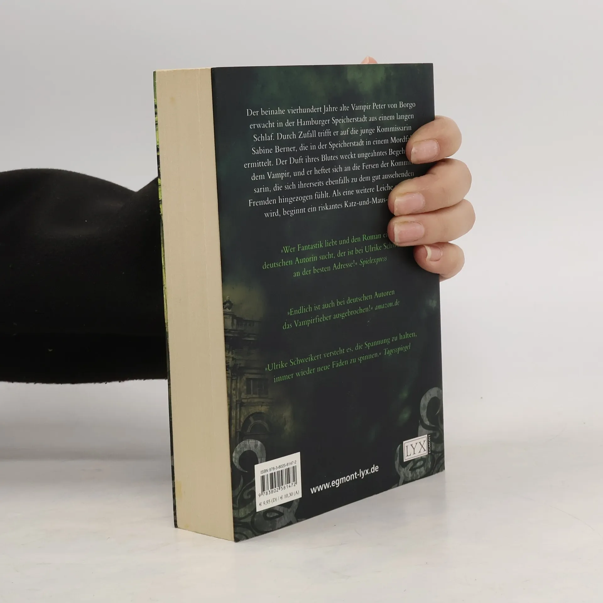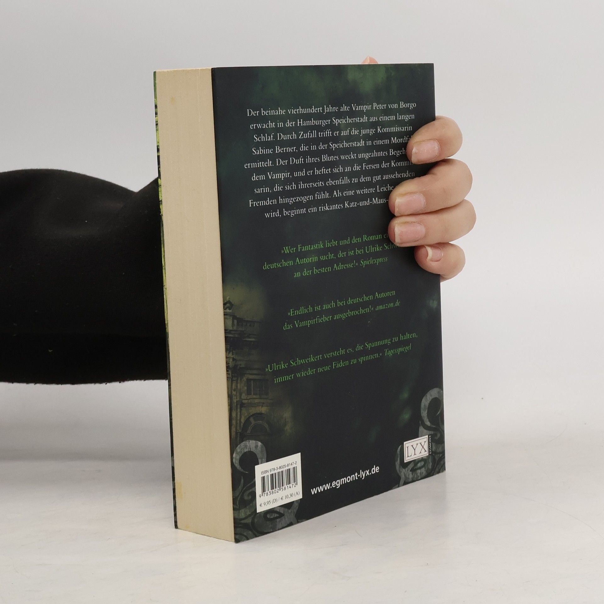 Der vierhundert Jahre alte Vampir Peter von Borgo erwacht in der Hamburger Speicherstadt aus einem langen Schlaf. Durch Zufall trifft er auf die junge Kommissarin Sabine Berner, die in einem Mordfall ermittelt. Der Duft ihres Blutes weckt ungeahntes Begehren in dem Vampir, und er heftet sich an die Fersen der Kommissarin, die sich ihrerseits zu dem gut aussehenden Fremden hingezogen fühlt …Fesselnde Mischung aus spannendem Krimi und erotischem Vampirroman! Von der Erfolgs-Autorin von Die Tochter des Salzsieders und Die Herrin der Burg!