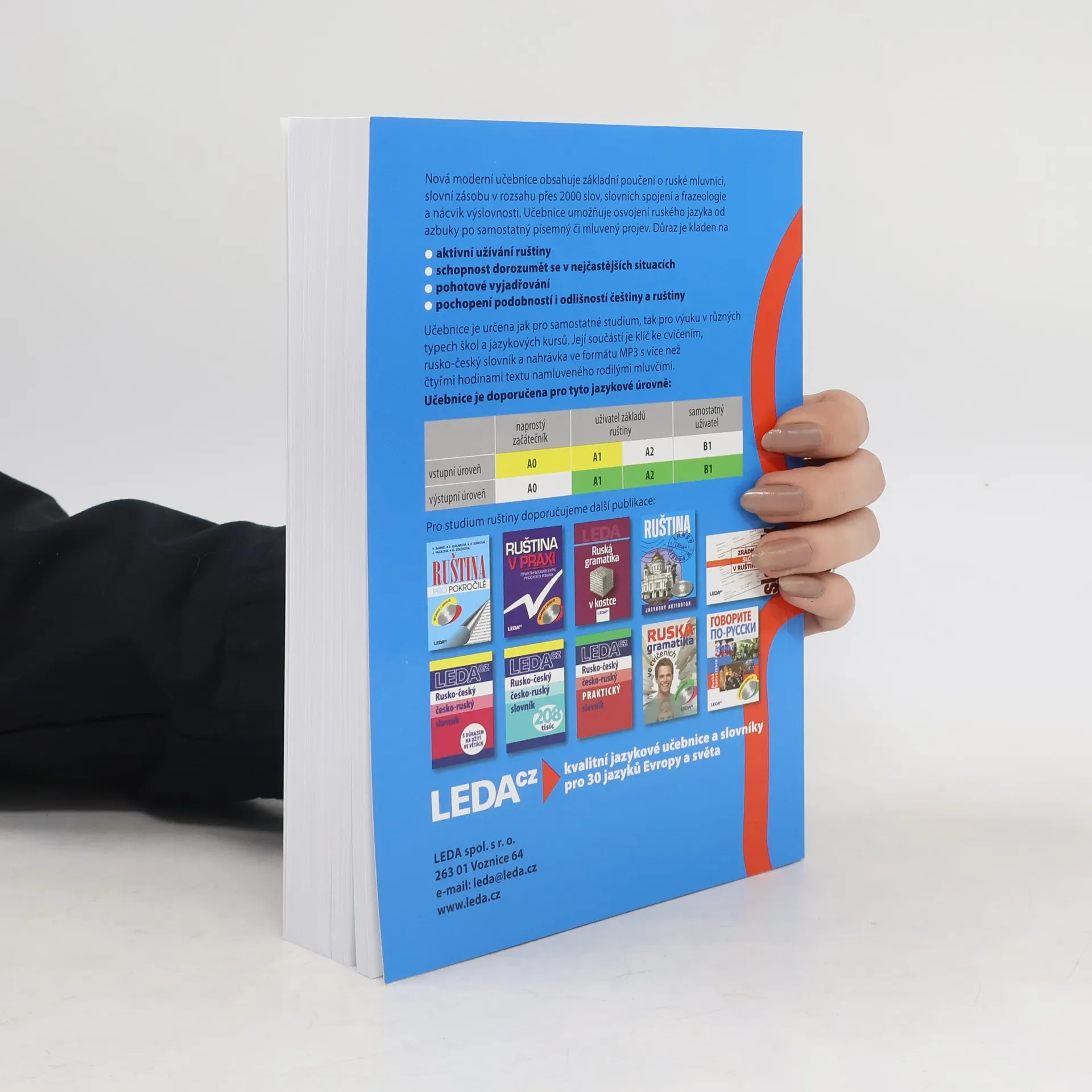 Nová, moderní učebnice přináší základní znalosti ruské mluvnice, slovní zásoby (v rozsahu přes 2000 slov a slovních spojení), frazeologie a výslovnosti. Učebnice umožňuje osvojení ruského jazyka od azbuky po samostatný písemný či mluvený projev. Důraz je kladen na aktivní užívání ruštiny, pochopení podobností i odlišnosti češtiny a ruštiny, schopnost dorozumět se v nejčastějších situacích a pohotové vyjadřování. Výběr témat z nejrůznějších oblastí běžného života vede k porozumění mluveného i čteného jazykového projevu, k nácviku vlastní aktivní konverzace i písemného vyjadřování. Součástí učebnice je brožura obsahující klíč ke cvičením a rusko-český slovník, vloženo je též CD s MP3 soubory s více než čtyřmi hodinami nahrávek úvodních textů a většiny cvičení. Učebnice je určena jak pro samostatné studium, tak pro výuku v různých typech škol (základních, středních i vysokých) a v jazykových kursech. Cílem učebnice je zvládnutí ruštiny na středně pokročilé úrovni (stupeň B2 Evropského jazykového rámce).