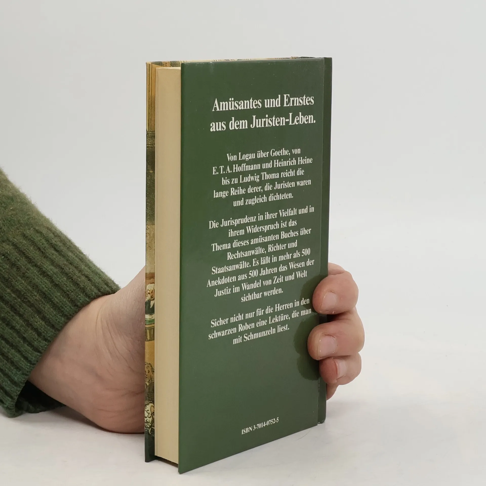 Amusantes und Erntes aus dem Juristen-Leben. Von Logau uber Goethe, von E.T.A. Hoffmann und Heinrich Heine bis zu Ludwig Rhoma reicht die lange Reihe derer, die Juristen waren und zeiglich dichteten. Die Jurisprudenz in ihrer Widerspruch ist das Thema dieses amusanten Buches uber Rechtsanwaite. Es labt in mehr als 500 Anekdoten aus 500 Jahren das Wesen der Justiz im Wandel von Zeit und Welt sichtbar werden. Sicher nicht nur fur die Herren in den schwarzen Roben eine Lekture, die man mit Schmunzeln liest.