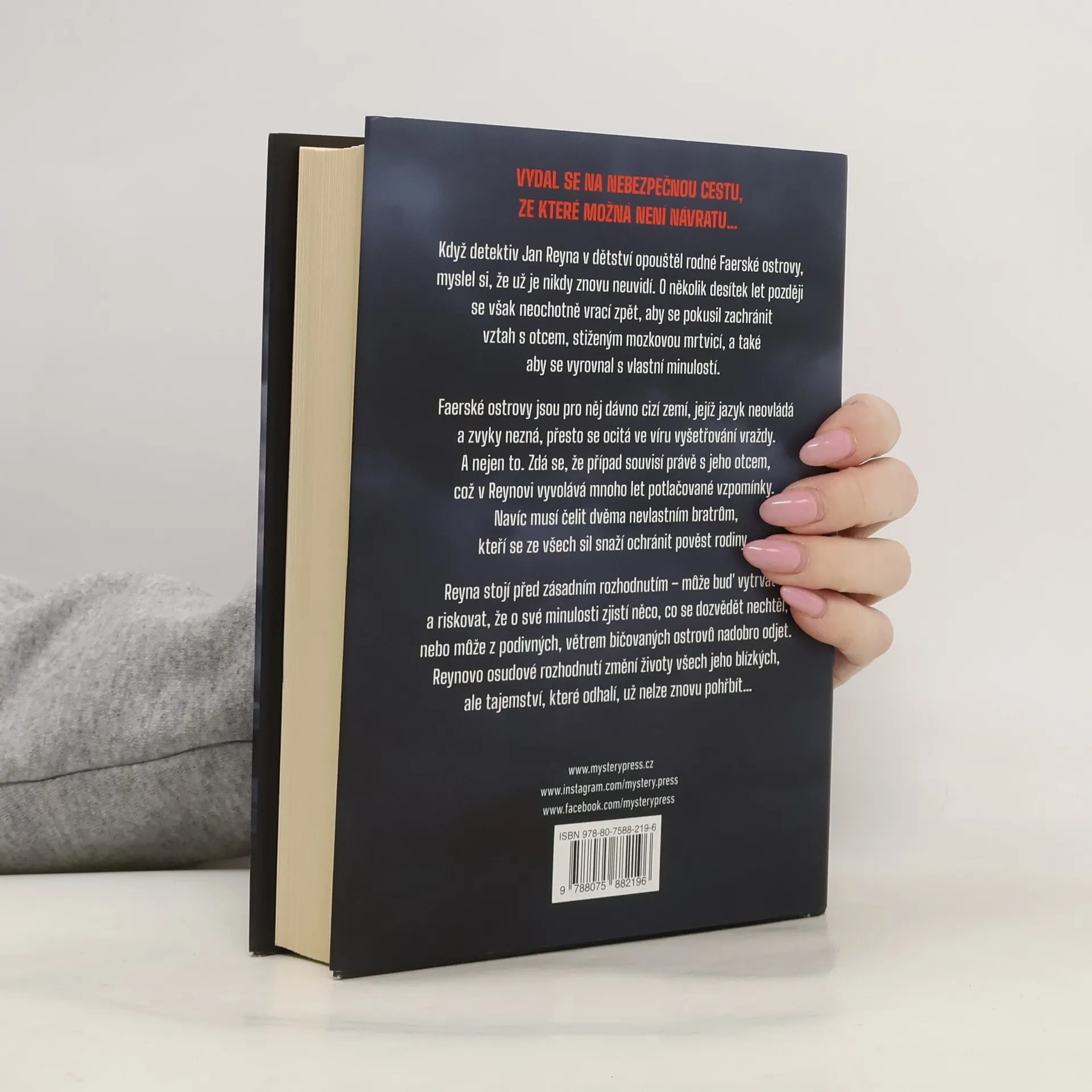 VYDAL SE NA NEBEZPEČNOU CESTU, ZE KTERÉ MOŽNÁ NENÍ NÁVRATU… Když detektiv Jan Reyna v dětství opouštěl rodné Faerské ostrovy, myslel si, že už je nikdy znovu neuvidí. O několik desítek let později se však neochotně vrací zpět, aby se pokusil zachránit vztah s otcem, stiženým mozkovou mrtvicí, a také aby se vyrovnal s vlastní minulostí. Faerské ostrovy jsou pro něj dávno cizí zemí, jejíž jazyk neovládá a zvyky nezná, přesto se ocitá ve víru vyšetřování vraždy. A nejen to. Zdá se, že případ souvisí právě s jeho otcem, což v Reynovi vyvolává mnoho let potlačované vzpomínky. Navíc musí čelit dvěma nevlastním bratrům, kteří se ze všech sil snaží ochránit pověst rodiny. Reyna stojí před zásadním rozhodnutím – může buď vytrvat a riskovat, že o své minulosti zjistí něco, co se dozvědět nechtěl, nebo může z podivných, větrem bičovaných ostrovů nadobro odjet. Reynovo osudové rozhodnutí změní životy všech jeho blízkých, ale tajemství, které odhalí, už nelze znovu pohřbít…