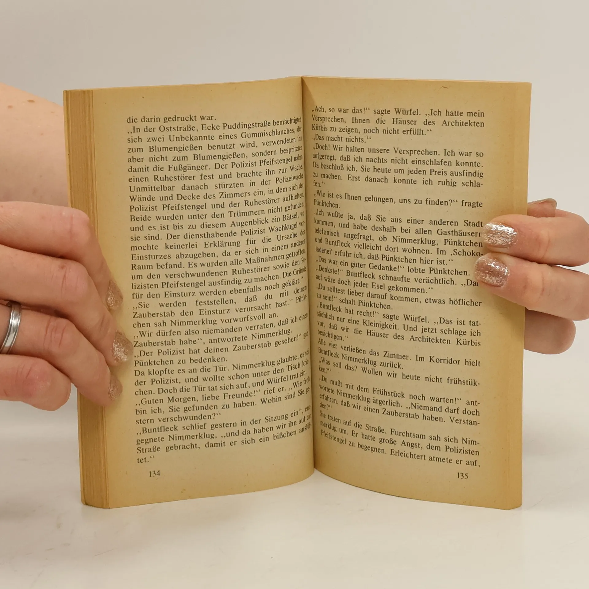 Nimmerklug aus dem Knirpsenland erlebt auch diesmal wieder unerhörte Abenteuer. Er verdient sich durch drei gute Taten einen Zauberstab. Doch der Zauberer warnt ihn: Der Stab verlöre seine Kraft, wenn Nimmerklug dreimal Schlechtes täte. Zusammen mit Pünktchen und Buntfleck macht sich Nimmerklug frohgemut auf den Weg nach Sonnenstadt. Sie wissen nicht, welcher Ärger sie dort mit den Windbeuteln erwartet und daß die Warnung nicht unbegründet war. Pünktchen aber findet schließlich zum rechten Schluß: Wer Verstand hat, braucht keinen Zauberstab!