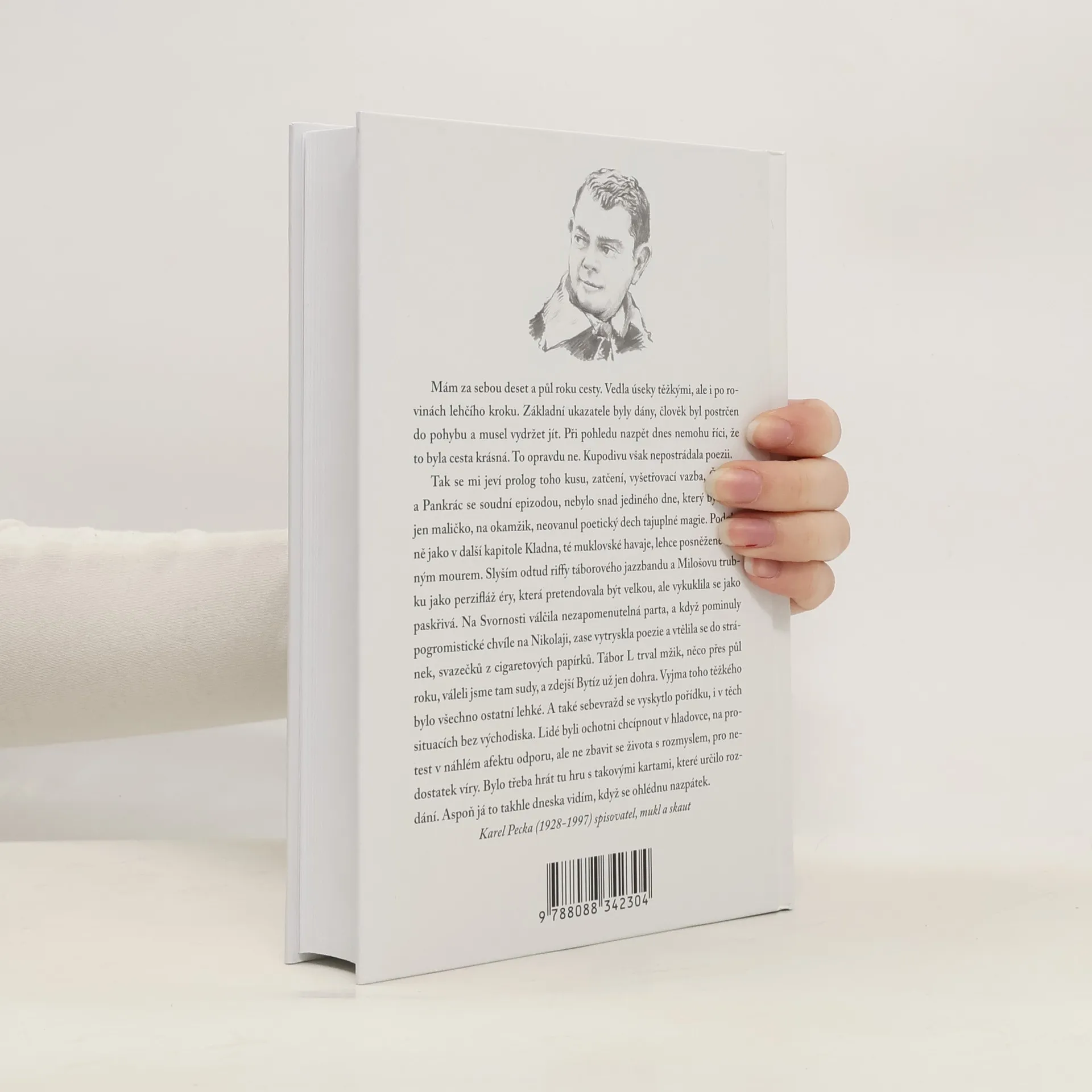 Mám za sebou deset a půl roku cesty. Vedla úseky těžkými, ale i po rovinách lehčího kroku. Základní ukazatele byly dány, člověk byl postrčen do pohybu a musel vydržet jít. Při pohledu nazpět dnes nemohu říci, že to byla cesta krásná. To opravdu ne. Kupodivu však nepostrádala poezii. Tak se mi jeví prolog toho kusu, zatčení, vyšetřovací vazba, Čtyřka, a Pankrác se soudní epizodou, nebylo snad jediného dne, který by třeba jen maličko, na okamžik, neovanul poetický dech tajuplné magie. Podobně jako v další kapitole Kladna, té muklovské havaje, lehce posněžené černým mourem. Slyším odtud riffy táborového jazzbandu a Milošovu trubku jako perzifláž éry, která pretendovala být velkou, ale vykuklila se jako paskřivá. Na Svornosti válčila nezapomenutelná parta, a když pominuly pogromistické chvíle na Nikolaji, zase vytryskla poezie a vtělila se do stránek, svazečků z cigaretových papírků. Tábor L trval mžik, něco přes půl roku, váleli jsme tam sudy, a zdejší Bytíz už jen dohra. Vyjma toho těžkého bylo všechno ostatní lehké. A také sebevražd se vyskytlo pořídku, i v těch situacích bez východiska. Lidé byli ochotni chcípnout v hladovce, na protest v náhlém afektu odporu, ale ne zbavit se života s rozmyslem, pro nedostatek víry. Bylo třeba hrát tu hru s takovými kartami, které určilo rozdání. Aspoň já to takhle dneska vidím, když se ohlédnu nazpátek. Karel Pecka (1928-1997) spisovatel, mukl a skaut