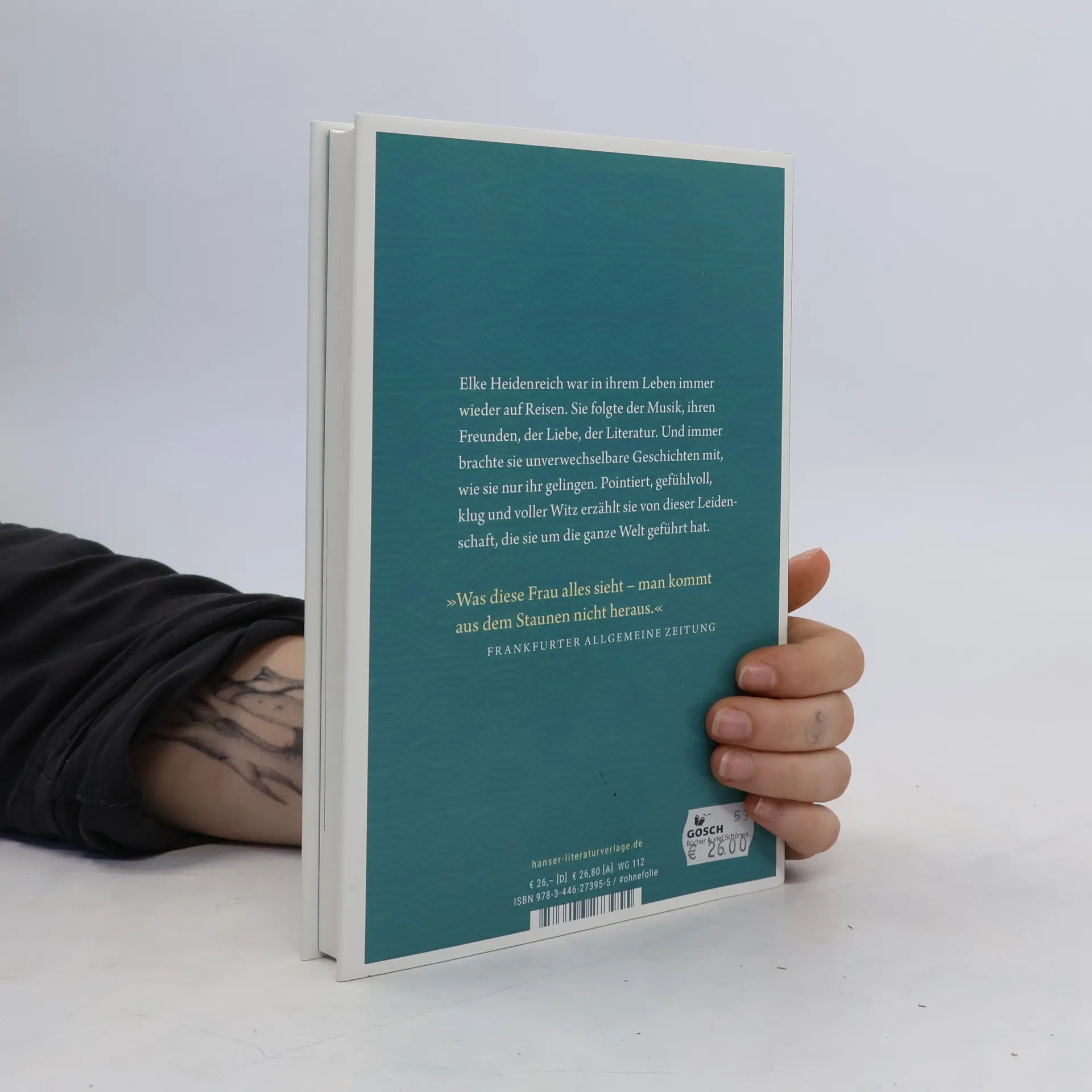 Elke Heidenreichs neues Buch, diese kurzen Geschichten zu weiten Reisen sind „seitenweise Reiseglück“, so Katja Kraft im Merkur: „Ach Elke, sie schafft`s doch immer wieder uns zu kriegen“! Elke Heidenreich ist in ihrem Leben sehr viel gereist: von Florenz nach China, von Berlin nach Amerika, und überall hat sie sich umgesehen. Nirgendwo jedoch ist sie ausgetretenen Pfaden gefolgt, nirgendwo hat sie nur das gefunden, was in den Reiseführern steht. Nein, sie hat sich ihre eigenen Wege gebahnt, hat Entdeckungen gemacht, die nur sie machen konnte, hat vor allem diejenigen Orte geliebt, die ihr etwas ganz Eigenes, Neues schenken konnten: eine besondere Straße, ein besonderes Essen, und einmal vermasselt ein Hund einfach eine Stadt wie Florenz. Und überall spürt sie die gleiche unstillbare Neugier auf die Menschen in den fremden Ländern und Städten. Eine wunderbare Entdeckungsreise!