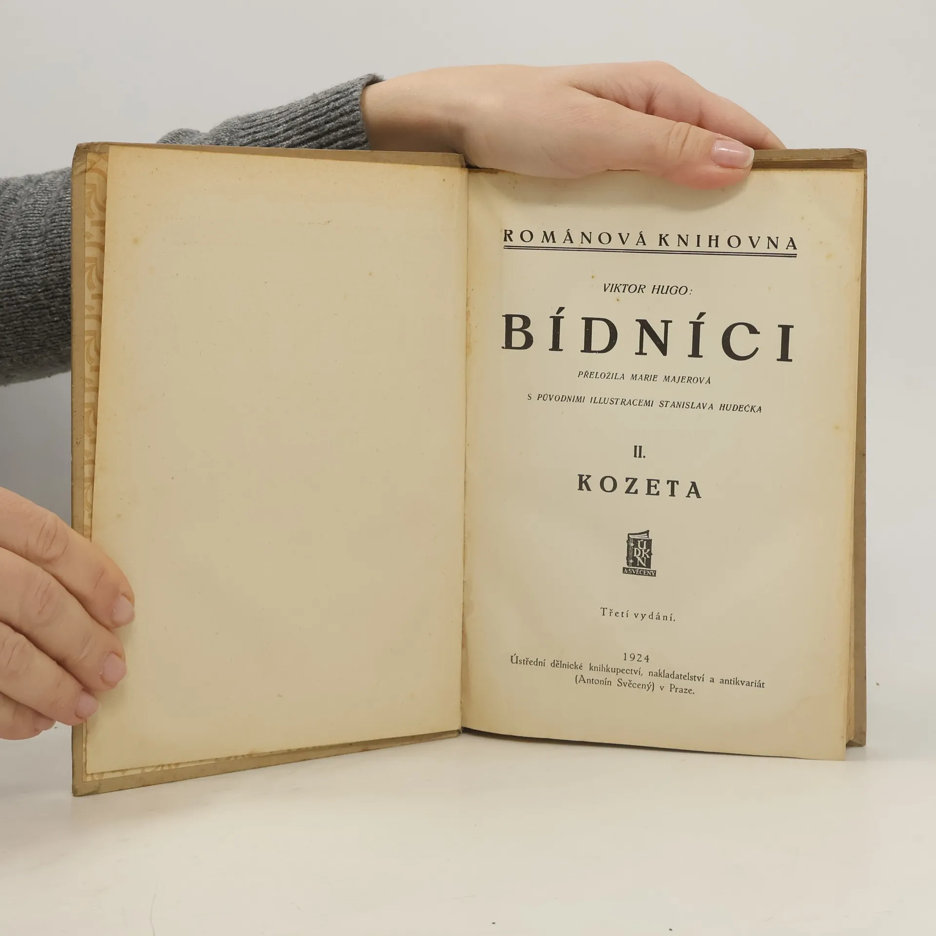 Victor Hugo: Bídníci, I. díl - Fantýna. Rok 1924, třetí vydání. Edice: Románová knihovna - Dílo Viktora Huga, I.