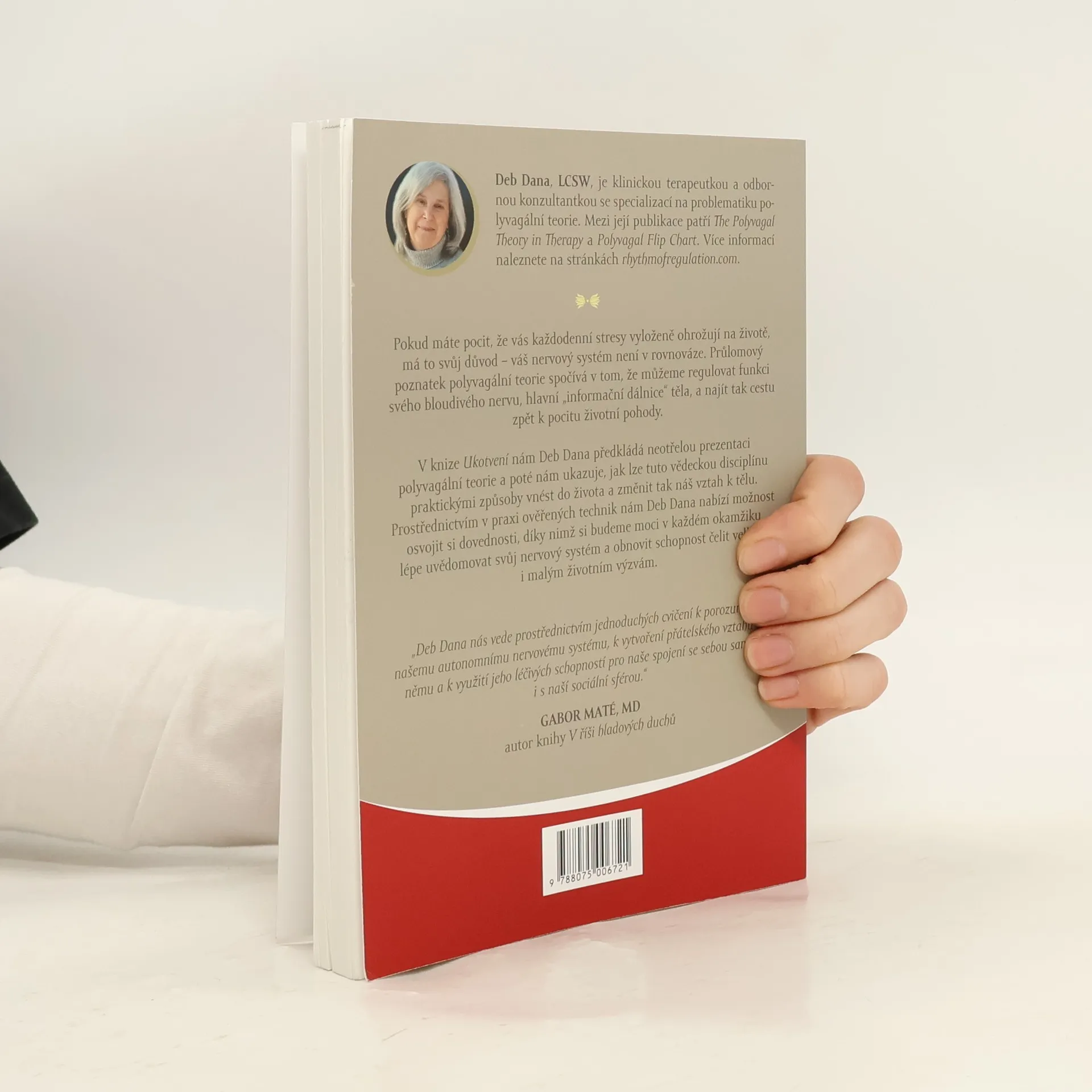 Pokud máte pocit, že vás každodenní stresy vyloženě ohrožují na životě, má to svůj důvod – váš nervový systém není v rovnováze. Průlomový poznatek polyvagální teorie spočívá v tom, že můžeme regulovat funkci svého bloudivého nervu, hlavní „informační dálnice“ těla, a najít tak cestu zpět k pocitu životní pohody. V knize Ukotvení nám Deb Dana předkládá neotřelou prezentaci polyvagální teorie a poté nám ukazuje, jak lze tuto vědeckou disciplínu praktickými způsoby vnést do života a změnit tak náš vztah k tělu. Prostřednictvím v praxi ověřených technik nám Deb Dana nabízí možnost osvojit si dovednosti, díky nimž si budeme moci lépe v každém okamžiku lépe uvědomovat svůj nervový systém a obnovit schopnost čelit velkým i malým životním výzvám.