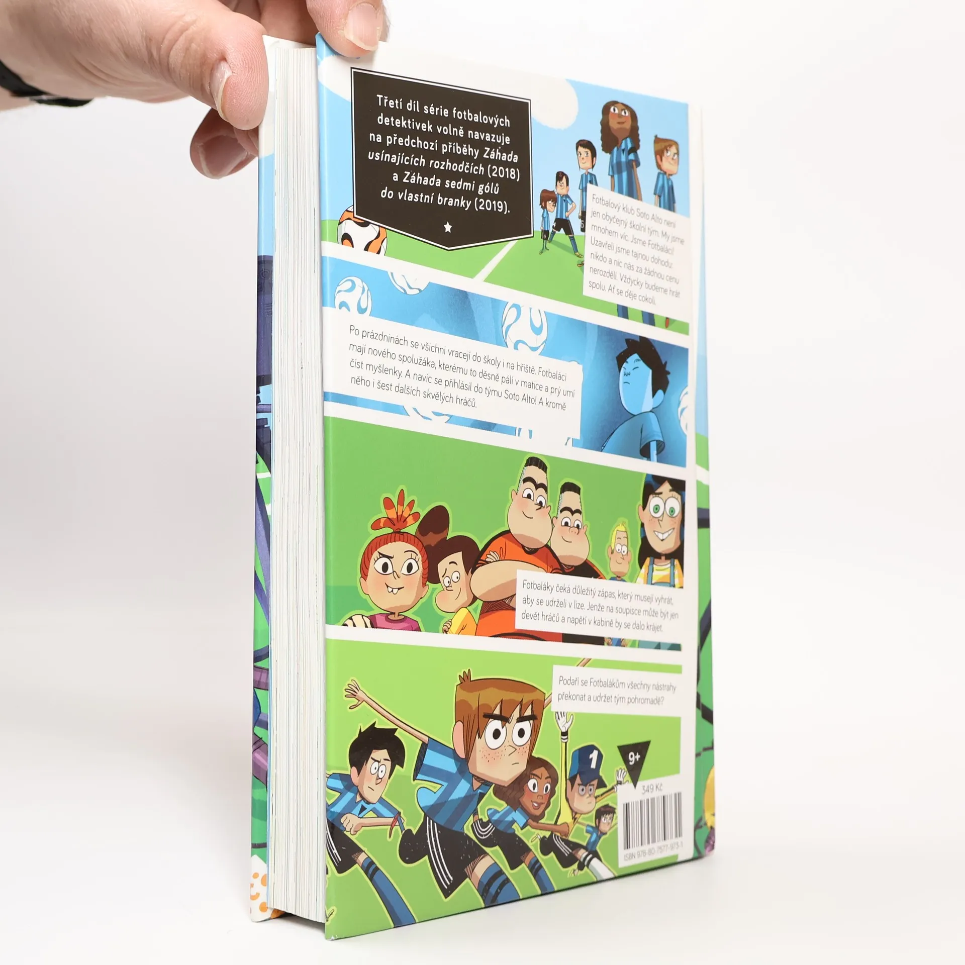 Pokračování detektivní série z fotbalového prostředí. Po prázdninách se všichni vracejí do školy i na hřiště. Fotbaláci mají nového spolužáka, kterému to děsně pálí v matice a prý umí číst myšlenky. A navíc se přihlásil do týmu Soto Alto! A kromě něho i šest dalších, vážně skvělých hráčů. Fotbaláky čeká důležitý zápas, který musejí vyhrát, aby se udrželi v lize. Jenže na soupisce může být jen devět hráčů a napětí v kabině by se dalo krájet. Nakladatelská anotace. Kráceno.