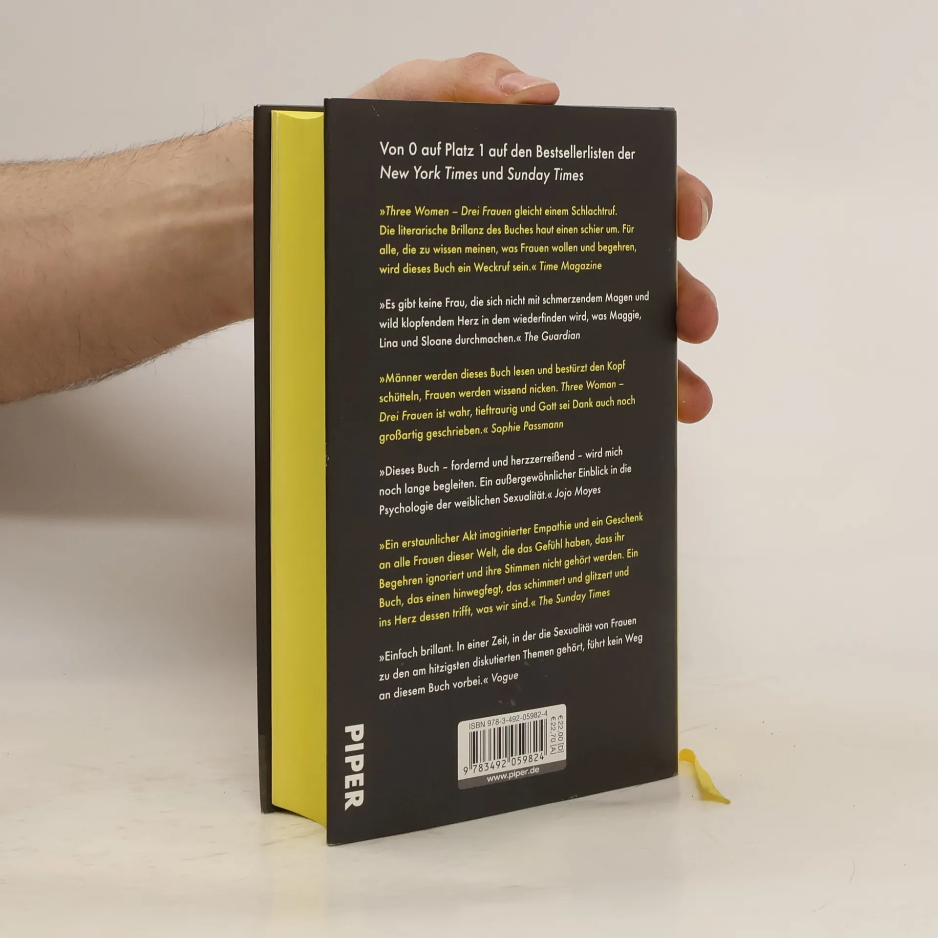 "Alles, was Lina will, ist, dass jemand sie begehrt. Wie ist sue in diese Ehe geraten, mit zwei Kindern und einem Mann, der sie nicht einmal mehr auf dem Mund küsst? Alles, was Maggie will, ist, dass jemand sie versteht. Wie konnte sie sich auf ihren Lehrer einlassen? Und warum scheinen alle nicht ihn, sondern sie dafür zu hassen? Alles, was Sloane will, ist, dass jemand sie bewundert. Wie ist sie zum Objekt der Begierde eines Mannes geworden, ihres Mannes, der nichts lieber tut, als ihr beim Sex mit anderen zuzuschauen? Three women - Drei Frauen ist das Buch der Stunde über weibliche Sexualität zwischen Lust und Macht, anziehend und verstörend, vielschichtig, gewaltig und schön"--Dust jacket flap