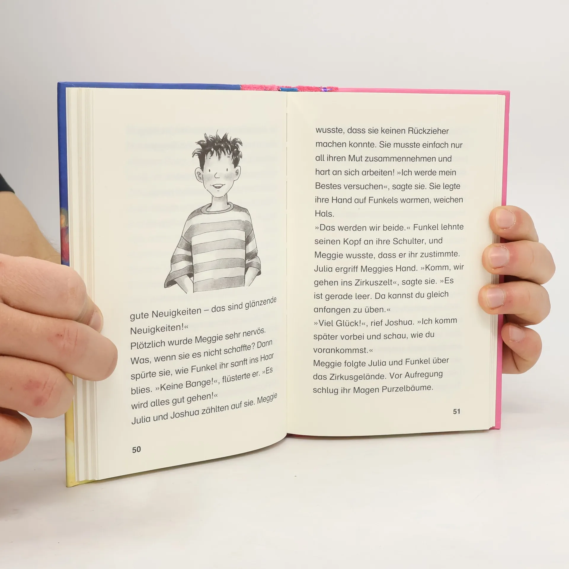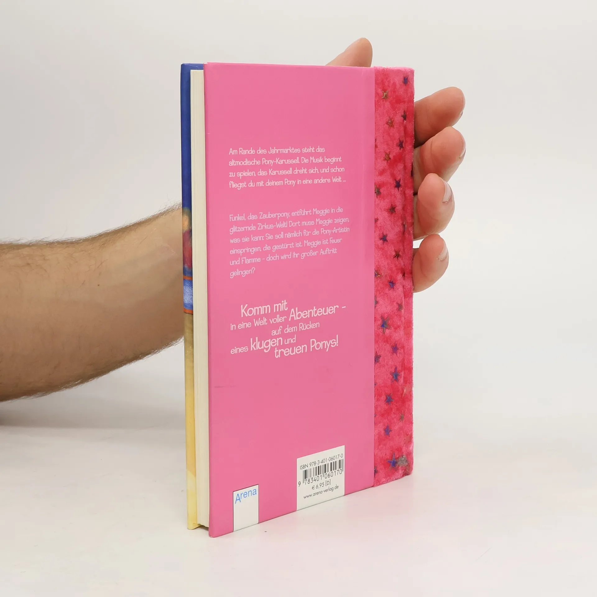Am Rande des Jahrmarktes, versteckt hinter einem Zuckerwattestand, steht das altmodische Pony-Karussell. Prächtige Holzponys drehen sich im Takt der Musik - ein Zirkuspferd, ein Cowboypony, ein Ritterpferd. Und wer mitfahren möchte, bekommt eine Fahrkarte mit dem Namen seines Ponys. Die Musik beginnt zu spielen, das Karussell dreht sich schneller und schneller - und plötzlich wiehert das Pony - und hinein geht es in ein wundervolles Abenteuer. Das magische Pony-Karussell entführt Mädchen ab 7 in eine Welt voller Romantik und Abenteuer, in der sie die mutige Heldin sein dürfen - auf dem Rücken eines klugen und treuen Ponys!
