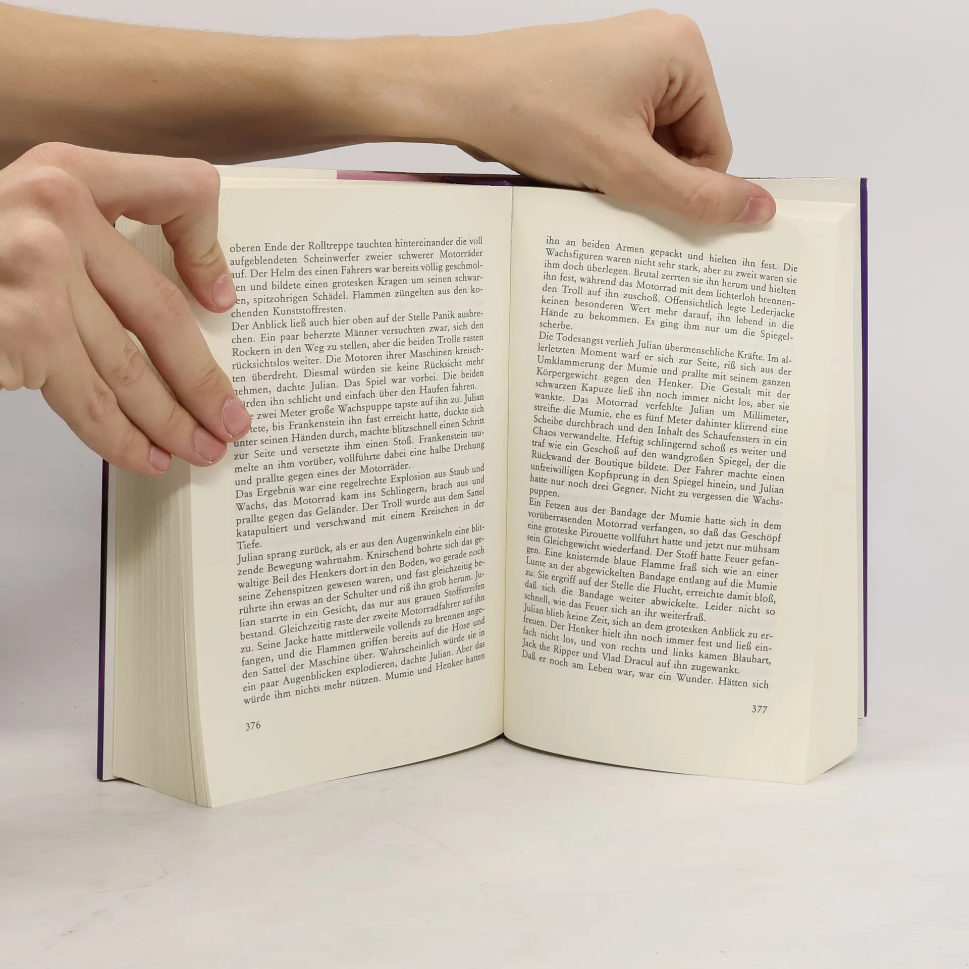 Nichts an dem Glaslabyrinth auf dem Rummelplatz läßt Julian ahnen, dass für ihn ein gefährliches Abenteuer beginnt. Denn kaum betritt er wieder die schmale Gasse mit den hellerleuchteten Buden, jagen Schattenmonster hinter ihm her. Auf der Flucht vor ihnen entdeckt der Junge seine Fähigkeit, durch Spiegel zu gehen, ohne diese zu zerstören. So gelangt er in eine lang vergangene Zeit und wird Zeuge, wie der Rummelplatz in einem Flammenmeer unterging. „Dein Vater war es, der damals diese Katastrophe heraufbeschworen hat. Und nur du kannst den unschuldigen Opfern helfen, die seither Tag für Tag diesen Brand aufs neue erleben müssen“, sagt Alice, die durch den Zauberspiegel von Julians Vater ging und nicht mehr in die Gegenwart zurückkehren konnten. „Denn dir sind dieselben magischen Kräfte gegeben wie ihm. Doch nutze sie besser als er.“ Nach und nach enthüllt sich dem Jungen die Schuld, die sein Vater seinerzeit auf sich geladen hat, aber auch der Weg, wie er ihn und die Menschen auf dem Rummelplatz erlösen kann - ein Weg voll finsterer Abgründe und schrecklicher Bedrohungen.