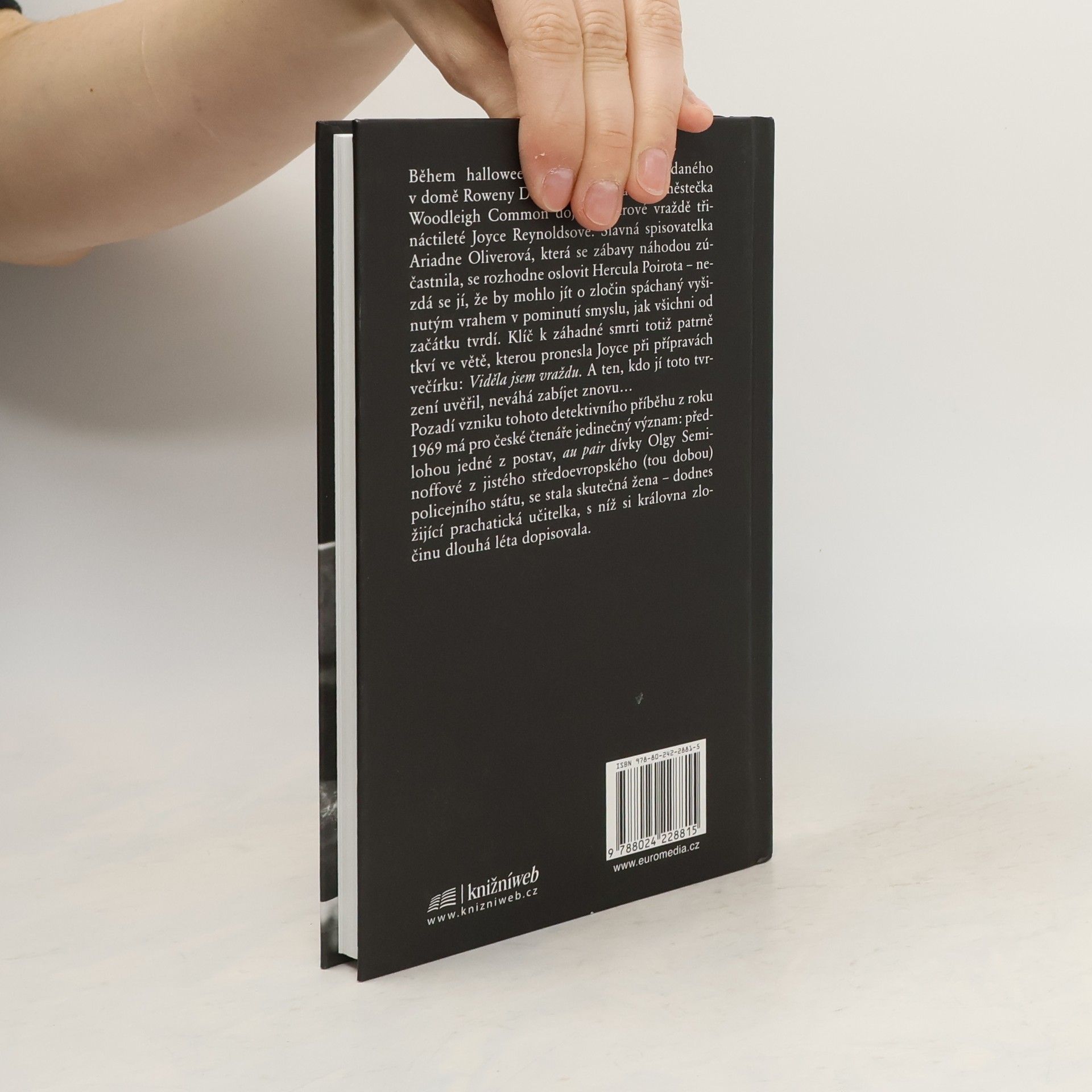 Během halloweenského večírku pořádaného v domě Roweny Drakeové pro mládež z městečka Woodleigh Common dojde k surové vraždě třináctileté dívenky. Slavná spisovatelka Ariadne Oliverová, která se zábavy náhodou zúčastnila, se rozhodne oslovit Hercula Poirota – nezdá se jí, že by mohlo jít o zločin spáchaný vyšinutým vrahem v pominutí smyslu. Klíč k záhadné smrti totiž patrně tkví ve větě, kterou pronesla zavražděná Joyce při přípravách večírku: Viděla jsem vraždu… Pozadí vzniku tohoto detektivního příběhu z roku 1969 má pro české čtenáře jedinečný význam: předlohou jedné z postav, au pair dívky Olgy Seminoffové, se stala prachatická učitelka, s níž si Agatha Christie dlouhá léta dopisovala.