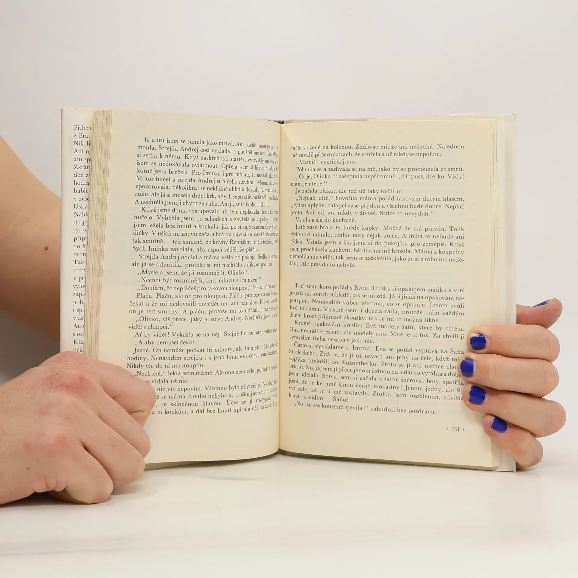 Příběh dospívající Olinky patří mezi nejvýznamnější díla Kláry Jarunkové a byl přeložený do mnoha jazyků. V USA vyšel jako Don´t cry for me. Příběh patnáctiletého děvčete z Bratislavy. Nikoli dobrodružný, nebo kriminální. Ani milostný, ani táborový, ani sportovní, ani... Zkrátka příběh. Jak člověka potkává den za dnem, událost za událostí, hodina za hodinou! Otec, matka, babička, škola, kamarádi. Zimní večer v zešeřelých ulicích, první náznak lásky. Nahlédnutí do světa rodičů, do jejich zlomů a katarzí, ale hlavně do světa patnáctiletých lidí, připravujících se k prvnímu kroku do života, jímž je blížící se poslední zvonění...