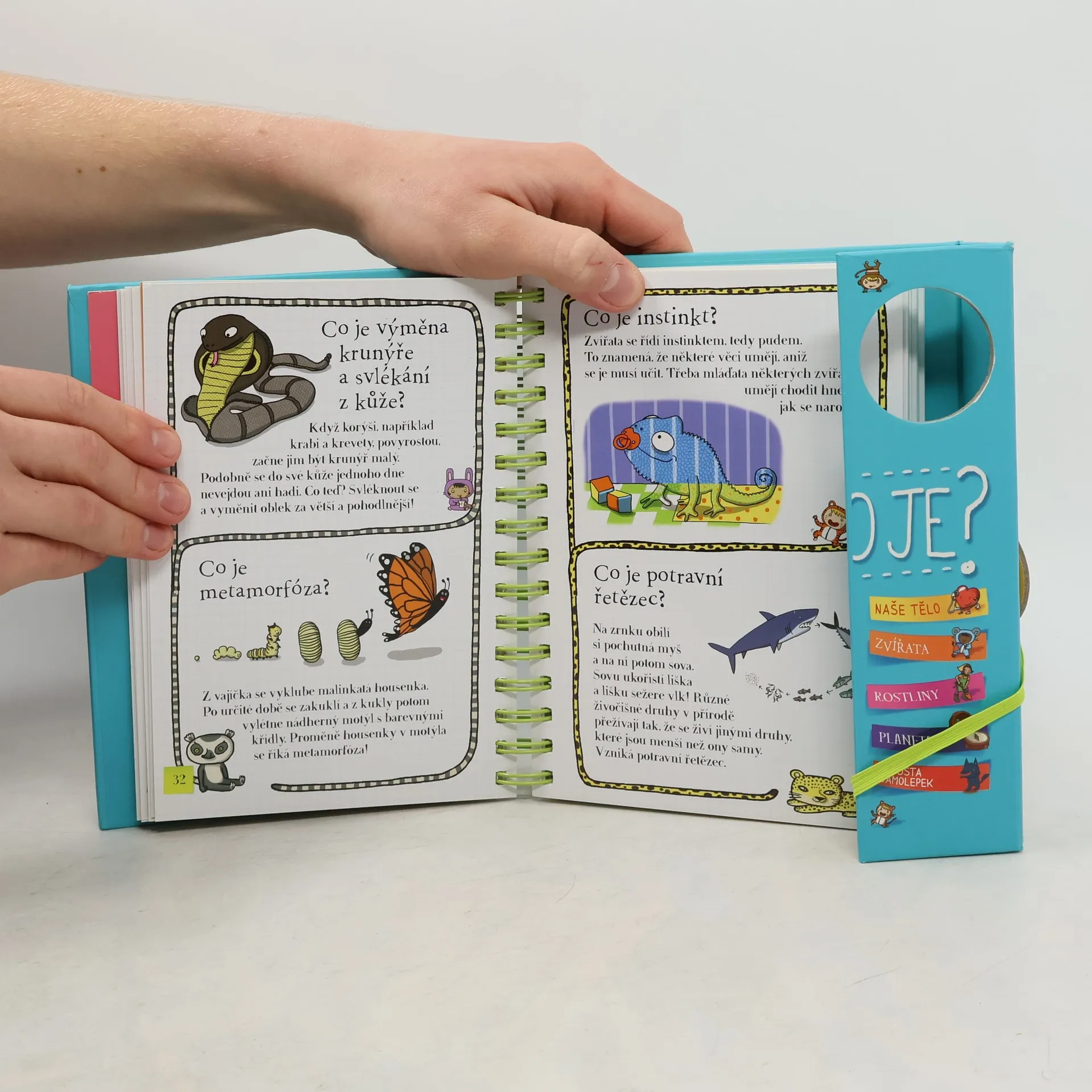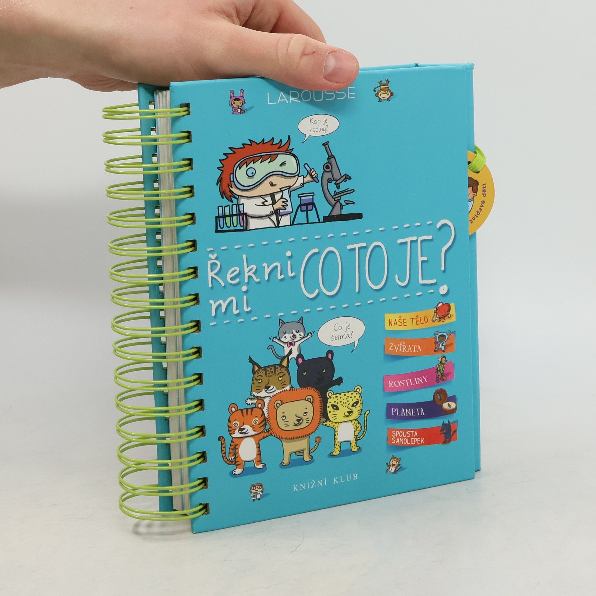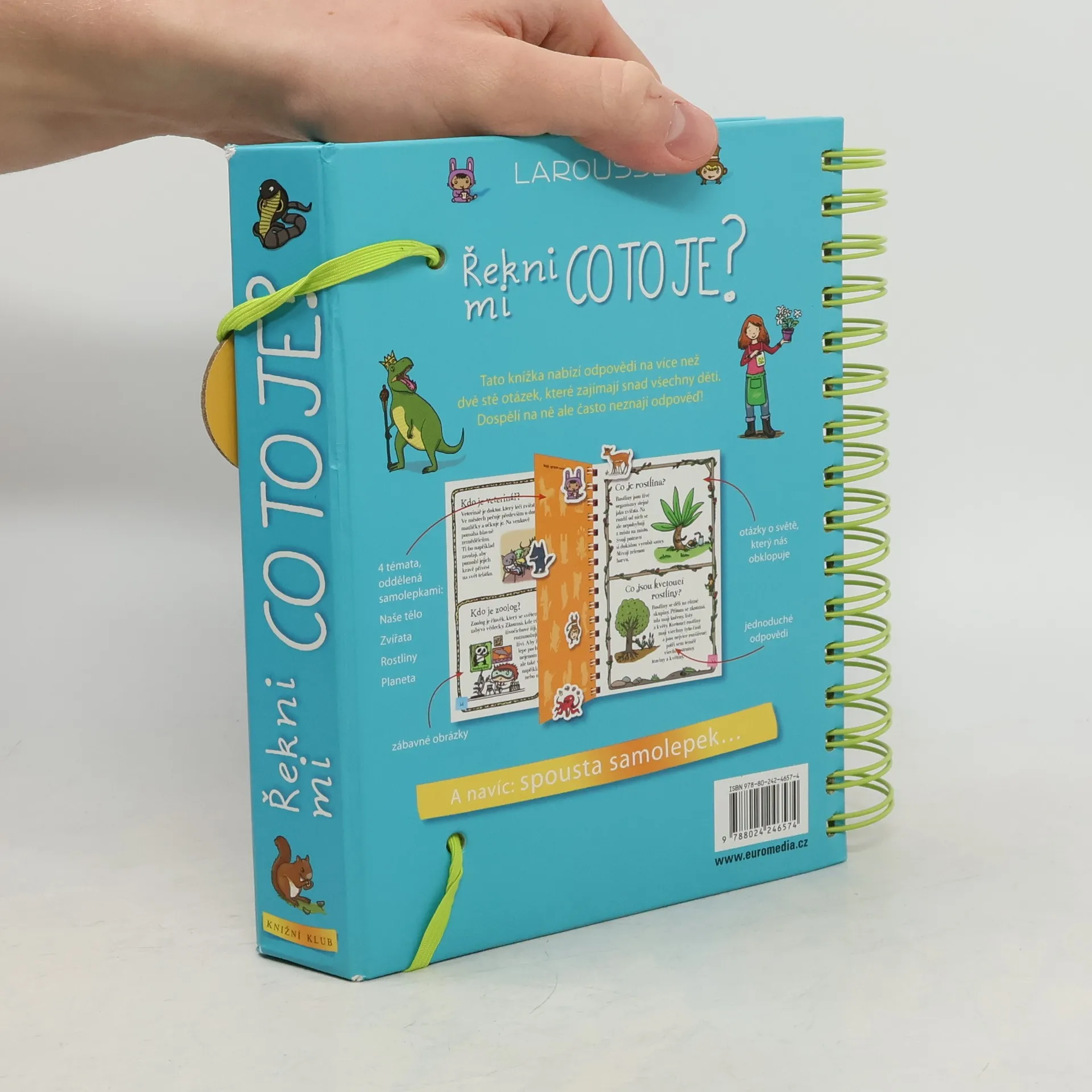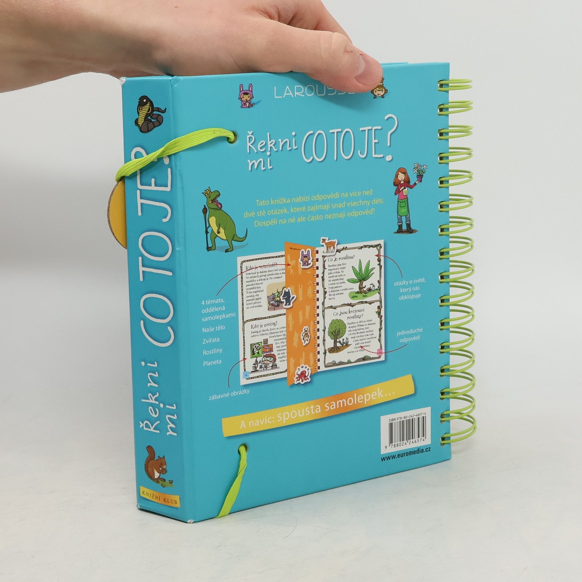 Další z úspěšných encyklopedií pro nejmenší (Řekni mi proč, Řekni mi jak) obsahuje odpovědi na více než 200 běžných dětských otázek. Jsou uspořádané podle témat do čtyř velkých oblastí: lidské tělo, zvířata, rostliny, Země. S pomocí této knihy mohou děti zábavným způsobem objevovat svět kolem sebe. Dozvědí se základní informace o fungování svého těla, o rozmanitosti svět zvířat, o životě rostlin a o planetě, na níž žijeme. Každou tematickou kapitolu doplňují samolepky a veselé obrázky.