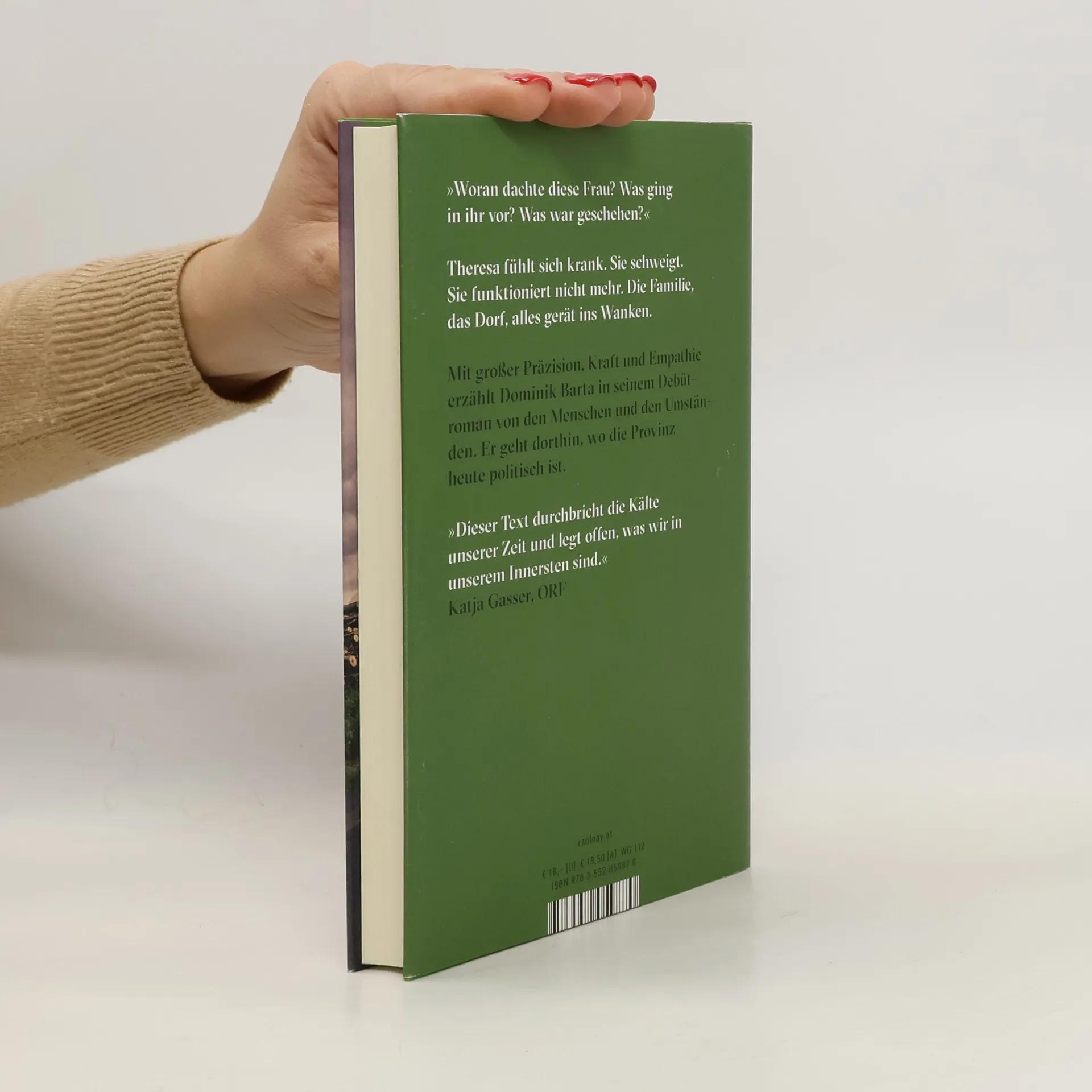 „Dieser Text durchbricht die Kälte unserer Zeit und legt offen, was wir in unserem Innersten sind.“ (Katja Gasser, ORF) Das starke, gesellschaftlich relevante Debüt von Dominik Barta Dass Theresa, um die sechzig und Bäuerin, sich plötzlich krank fühlt, bringt alle Gewissheiten ins Wanken. Die erwachsenen Kinder müssen anreisen, von wo auch immer es sie hin verschlagen hat, um endlich wieder miteinander zu reden. Theresas Mann muss lernen, Hilfe und Gefühle zu akzeptieren. Und selbst der zwölfjährige Daniel muss seinem verbohrten Onkel Max entschlossen entgegentreten, um seinen einzigen wirklichen Freund zu schützen. Theresa aber schweigt, findet keine Worte, keinen Weg. Mit großer Präzision und archaischer Kraft und Empathie erzählt Dominik Barta in seinem Debütroman von den Menschen und den Umständen. Er schreibt eine große Tradition der österreichischen Literatur fort und geht dorthin, wo die Provinz heute politisch ist.