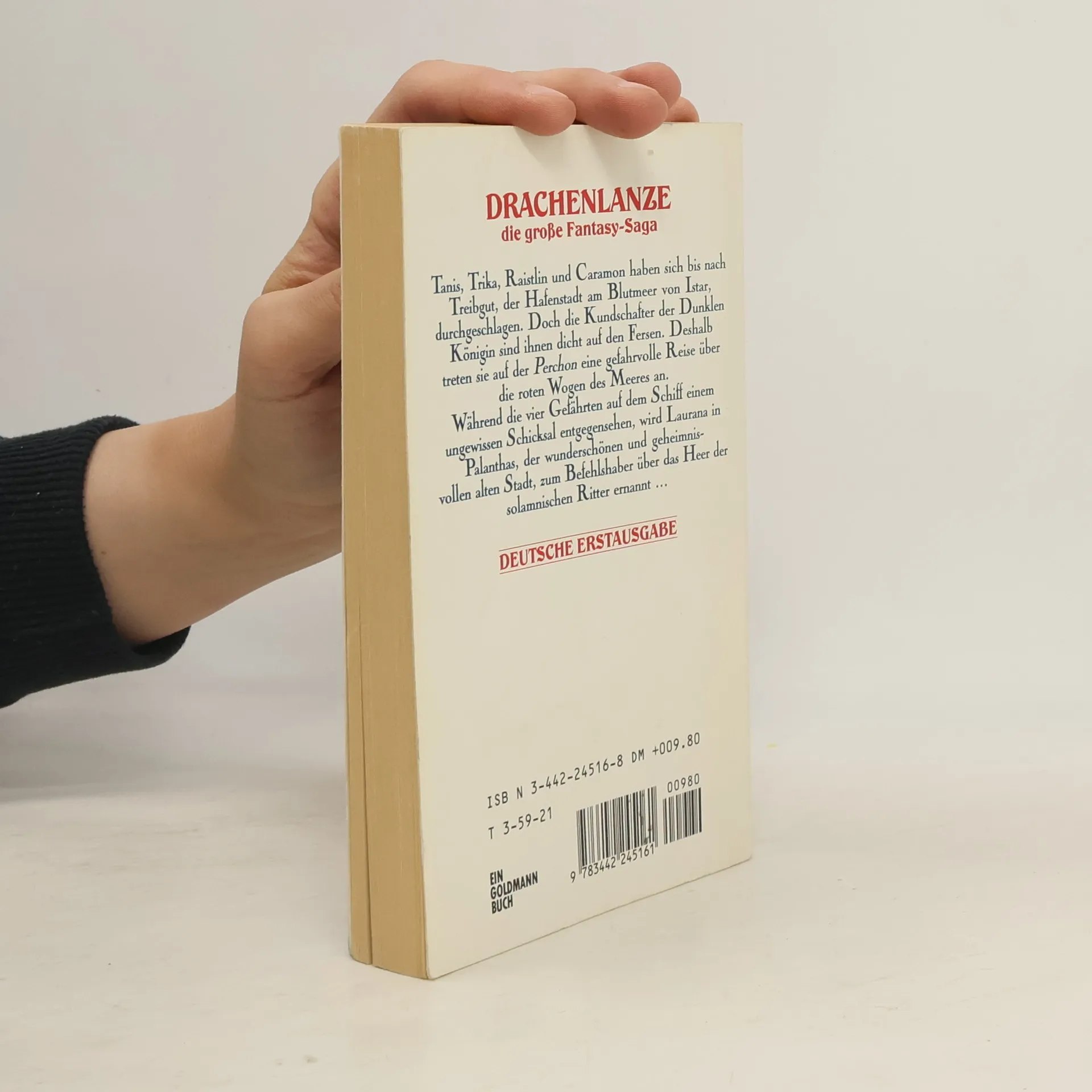 Tanis, Trika, Raistlin und Caramon haben sich bis nach Treibgut, der Hafenstadt am Blutmeer von Istar, durchgeschlagen. Doch die Kundschafter der Dunklen Königin sind ihnen dicht auf den Fersen. Deshalb treten sie auf der Perchon eine gefahrvolle Reise über die roten Wogen des Meeres an. Während die vier Gefährten auf dem Schiff einem ungewissen Schicksal entgegensehen, wird Laurana in Palanthas, der wunderschönen und geheimnisvollen alten Stadt, zum Befehlshaber über das Heer der solamnischen Ritter ernannt...