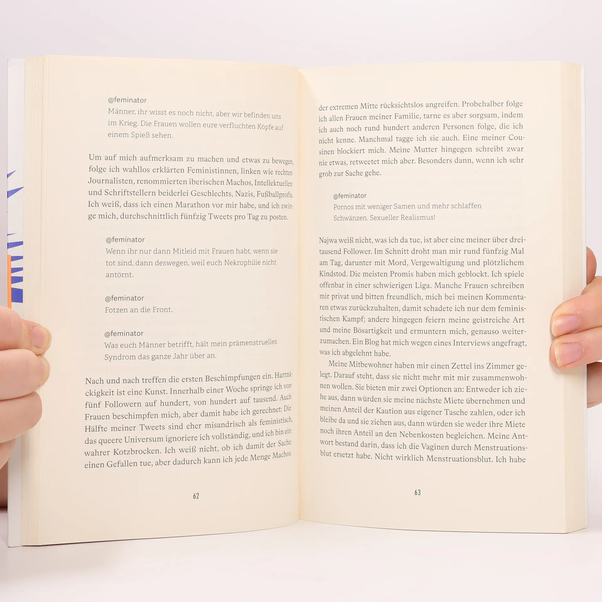 Liebe, Feminismus, für den Helden dieses Buches ist das ab sofort das Gleiche. Er verliebt sich in eine Hardcore-Feministin. Das heißt: in Lichtgeschwindigkeit vom ignoranten Gewohnheitsmacho zum Judith-Butler-Exegeten, mit den entsprechenden Kollateralschäden bei Familie, Freunden und am Arbeitsplatz. Denn für die Gleichberechtigung kämpft er mit wirklich allen zur Verfügung stehenden Mitteln … Ein Roman für alle, die sich einig sind, dass sie Mario Barth scheiße finden, in Sachen Feminismus sonst aber bisweilen nicht weiterwissen. Bevor er sich in Najwa verliebt, hat er keinen blassen Schimmer vom Feminismus. Er ist ein 08/15-Typ mit den üblichen Vorurteilen, blinden Flecken, problematischen Verhaltensweisen. Aber bei ihr geht er in eine harte Schule. Sein Blick auf die Welt verändert sich: Beeinträchtigungen, Ungerechtigkeiten, Diskriminierungen sind plötzlich überall, genau wie die Paradoxien und der Unmut, der ihm entgegenschlägt, sobald er nur wieder irgendwo vom grausamen Patriarchat anfängt. Wie kann er die Frauen in diesem Kampf am besten unterstützen? Ein Wutanfall seiner Mutter bringt ihn auf eine folgenschwere Idee.