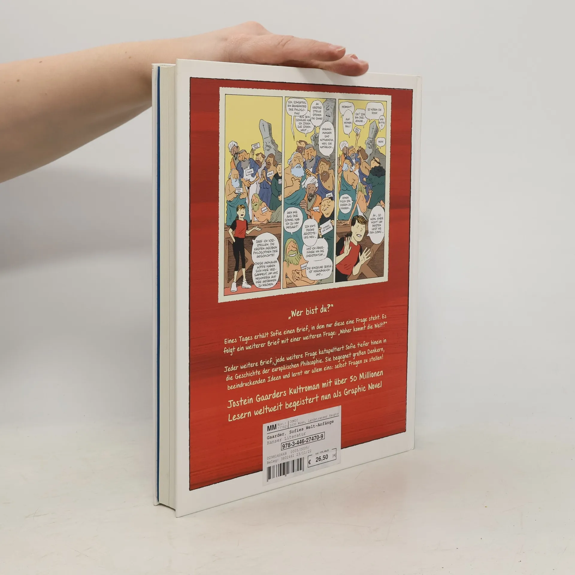 Jostein Gaarders Weltbestseller über die Geschichte der Philosophie – jetzt als Graphic Novel! Eines Tages erhält Sofie einen Brief, in dem nur eine Frage steht: „Wer bist du?“ Es folgen weitere Briefe, von wem sie stammen, bleibt ein Rätsel. Doch sie entführen die junge Frau auf eine Reise durch die Geschichte der Philosophie, in deren Verlauf sie den großen Denkern Europas begegnet: von Sokrates über Hegel bis hin zu Sartre. Jostein Gaarders Roman erscheint nun als Comic, in dem man unmittelbar eintaucht in die Welt der Sofie Amundsen und sich mit ihr die großen Fragen des Lebens stellt. Eine beeindruckende Graphic Novel, die Fans des Kultromans und die nächste Generation gleichermaßen begeistern wird!