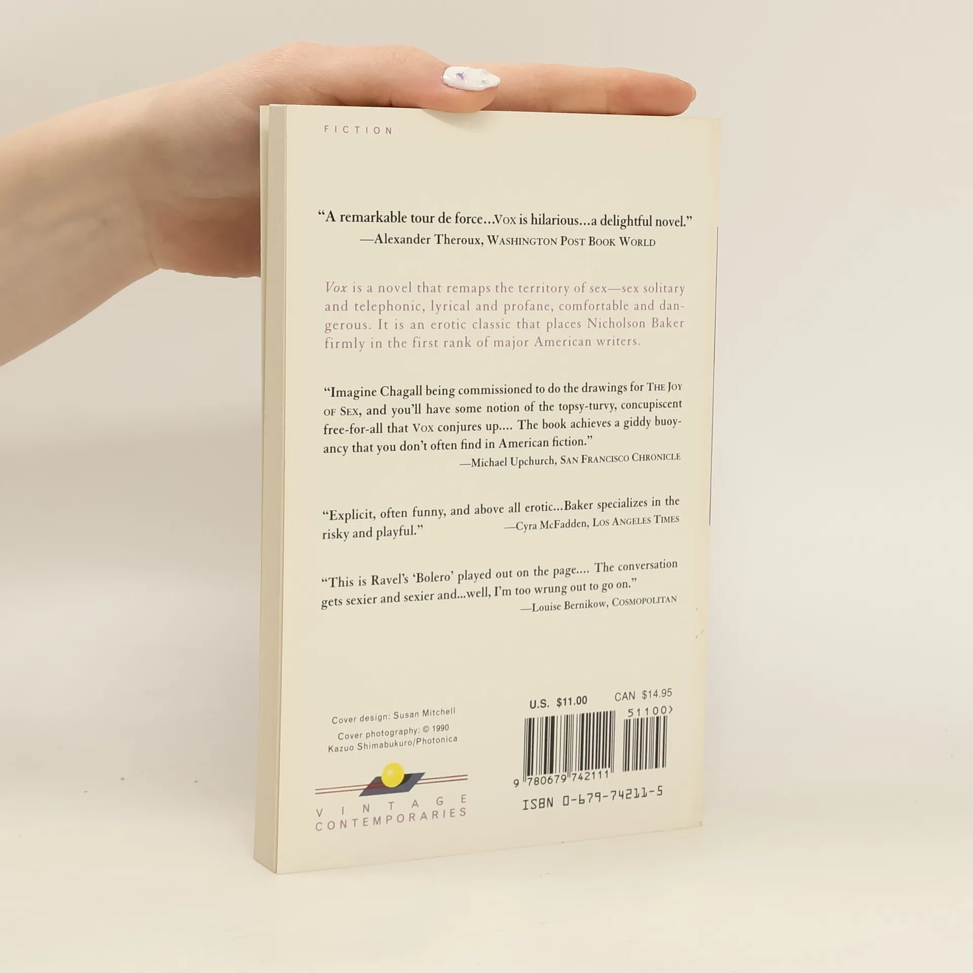 NATIONAL BESTSELLER Vox is a novel that remaps the territory of sex—sex solitary and telephonic, lyrical and profane, comfortable and dangerous. It is an erotic classic that places Nicholson Baker firmly in the first rank of major American writers.