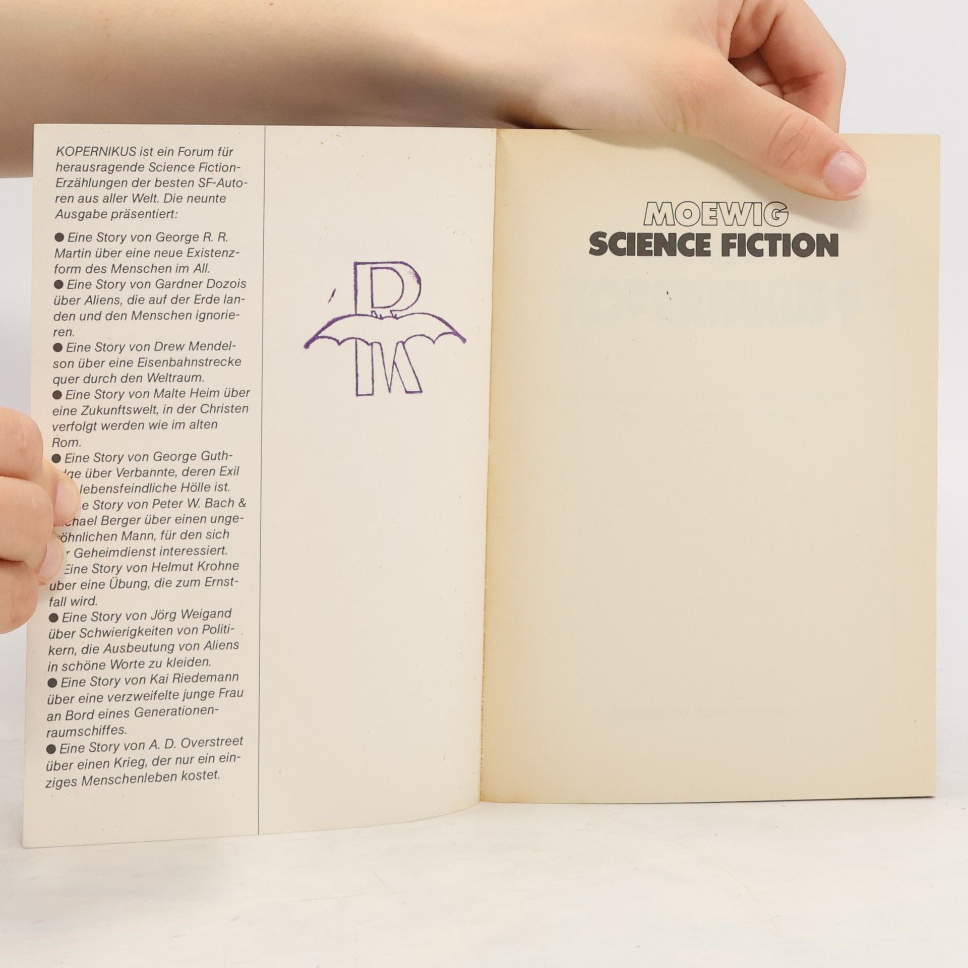 Enthält die Texte: -Nur einer soll sterben A. D. Overstreet -Dashas erster Kampf Kim Barkmann -Vierzig Tage mit Helen Harald Kurt Frost -Jonas-Projekt Peter W. Bach & Michael A. Berger -Pressekonferenz Jörg Weigand -Die Flitzer George R. R. Martin -Einst baute ich eine Eisenbahn Drew Mendelson -Die Verbannten, die Gejagten George Guthridge -Zwölf-Stunden-Reise in das verlorene Leben der Monika A. Kai Riedemann -Der neue Budd Malte Heim -Fire and Forget oder Die Übung Helmut Krohne -Die Fesseln der See Gardner R. Dozois -Nachwort Hans Joachim Alpers
