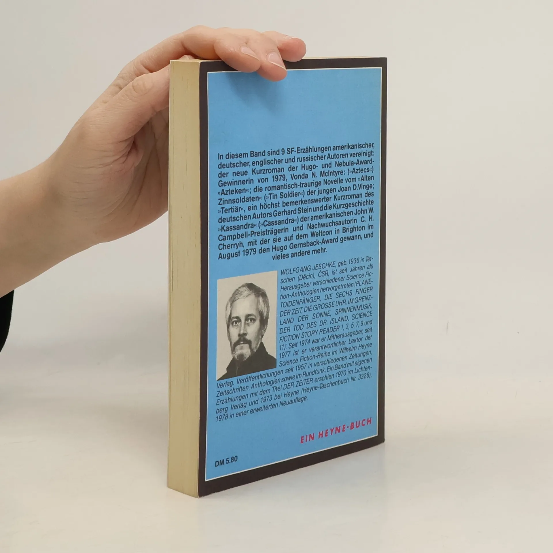 In diesem Band sind 9 SF-Erzählungen amerikanischer, deutscher, englischer und russischer Autoren vereinigt: der neue Kurzroman der Hugo- und Nebula-Award-Gewinnerin von 1979, Vonda N. McIntyre: (»Aztecs«) »Azteken«; die romantisch-traurige Novelle vom »Alten Zinnsoldaten« (»Tin Soldier«) der jungen Joan D.Vinge; »Tertiär«, ein höchst bemerkenswerter Kurzroman des deutschen Autors Gerhard Stein und die Kurzgeschichte »Kassandra« (»Cassandra«) der amerikanischen John W. Campbell-Preisträgerin und Nachwuchsautorin C. H. Cherryh, mit der sie auf dem Weltcon in Brighton im August 1979 den Hugo Gernsback-Award gewann, und vieles andere mehr.