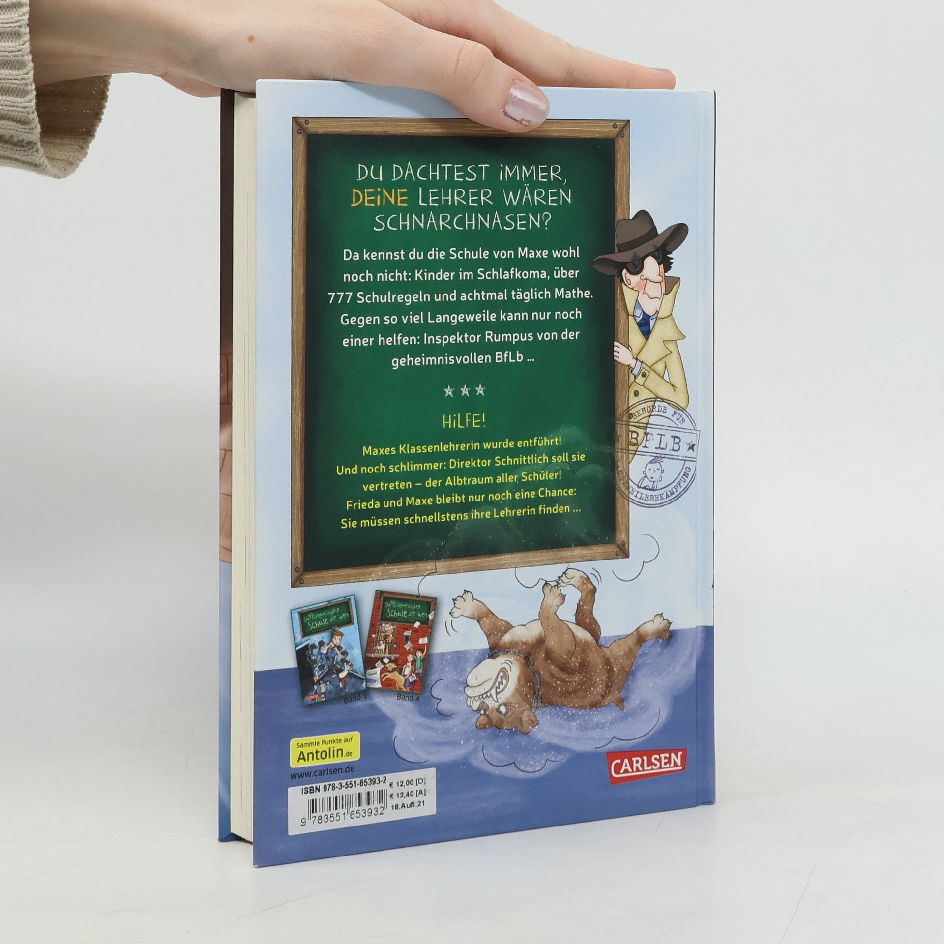 „Bitte leise atmen!“ heißt es für Maxe, Frieda und ihre Klasse in der langweiligsten Schule der Welt. Ein Fall für Inspektor Rasputin Rumpus von der Behörde für Langeweilebekämpfung! *** BAND 3: HILFE! Maxes Klassenlehrerin wurde entführt! Und noch schlimmer: Direktor Schnittlich soll sie vertreten. Der Albtraum aller Schüler! Frieda und Maxe bleibt nur noch eine Chance: Sie müssen so schnell wie möglich ihre Lehrerin finden ... *** DIE UNLANGWEILIGSTE SCHULE DER WELT: Du dachtest immer, deine Schule wäre langweilig? Da kennst du die Schule von Maxe wohl noch nicht: Kinder im Schlafkoma, über 777 Schulregeln und achtmal täglich Mathe. Gegen so viel Langeweile kann nur noch einer helfen: Inspektor Rumpus von der geheimnisvollen BfLb … *** Eine witzige, turbulente Reihe für Jungs und Mädchen ab 8 Jahren! Lustige Schulgeschichten plus Agenten-Spannung plus viele Bilder = Lesespaß pur! *** Kurze Kapitel und viele Bilder machen das Lesen lernen leichter!*** „Witzige Mischung aus Klassenchaos und Agentenspannung“, Spick 415, Juli/August 2017 ***