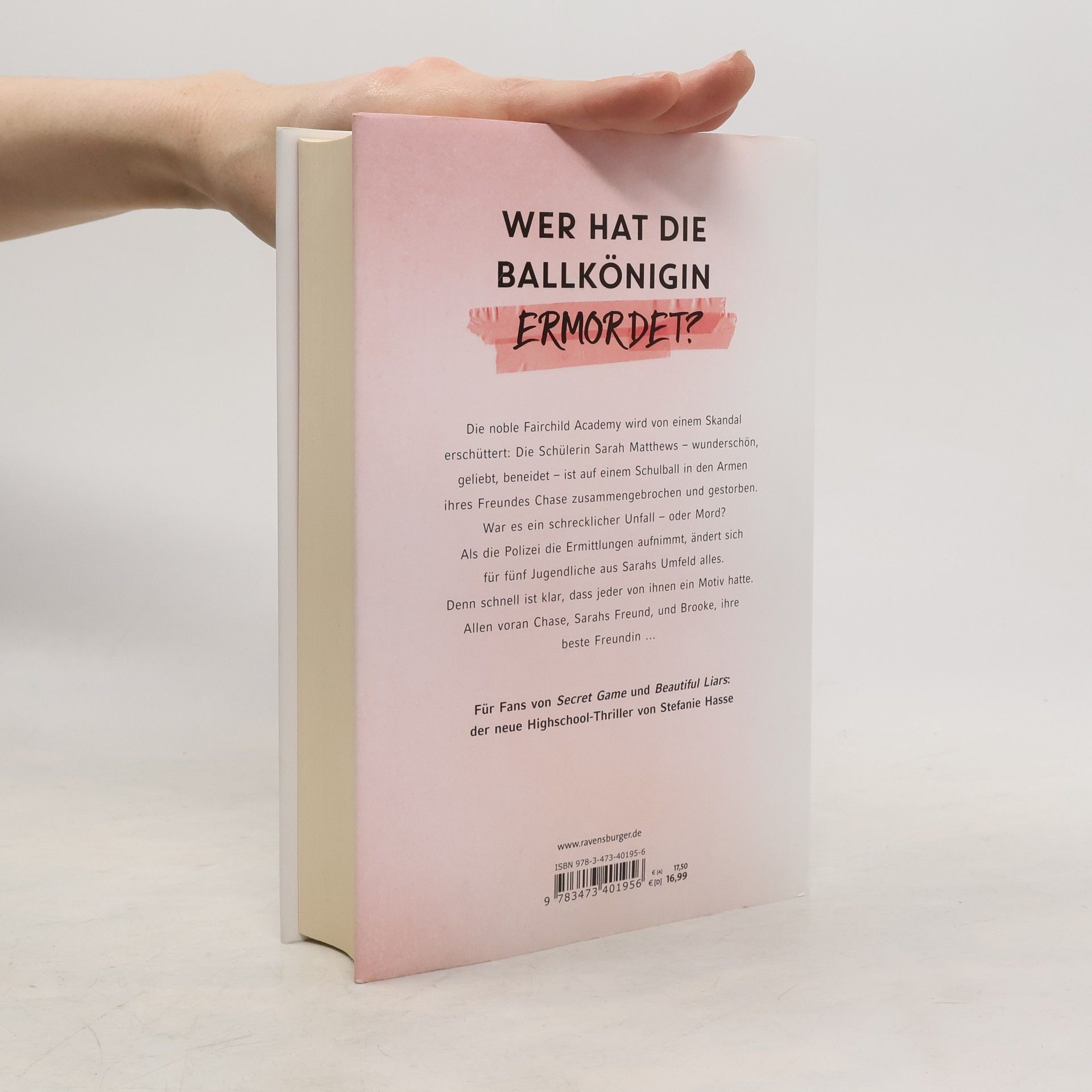 Wer hat die Ballkönigin ermordet? Die noble Fairchild Academy wird von einem Skandal erschüttert: Die Schülerin Sarah Matthews – wunderschön, geliebt, beneidet – ist auf einem Schulball in den Armen ihres Freundes Chase zusammengebrochen und gestorben. War es ein schrecklicher Unfall – oder Mord? Als die Polizei die Ermittlungen aufnimmt, ändert sich für fünf Jugendliche aus Sarahs Umfeld alles. Denn schnell ist klar, dass jeder von ihnen ein Motiv hatte. Allen voran Chase, Sarahs Freund, und Brooke, ihre beste Freundin … Für Fans von „Secret Game“ und „Beautiful Liars“: der neue Highschool-Thriller von Stefanie Hasse.
