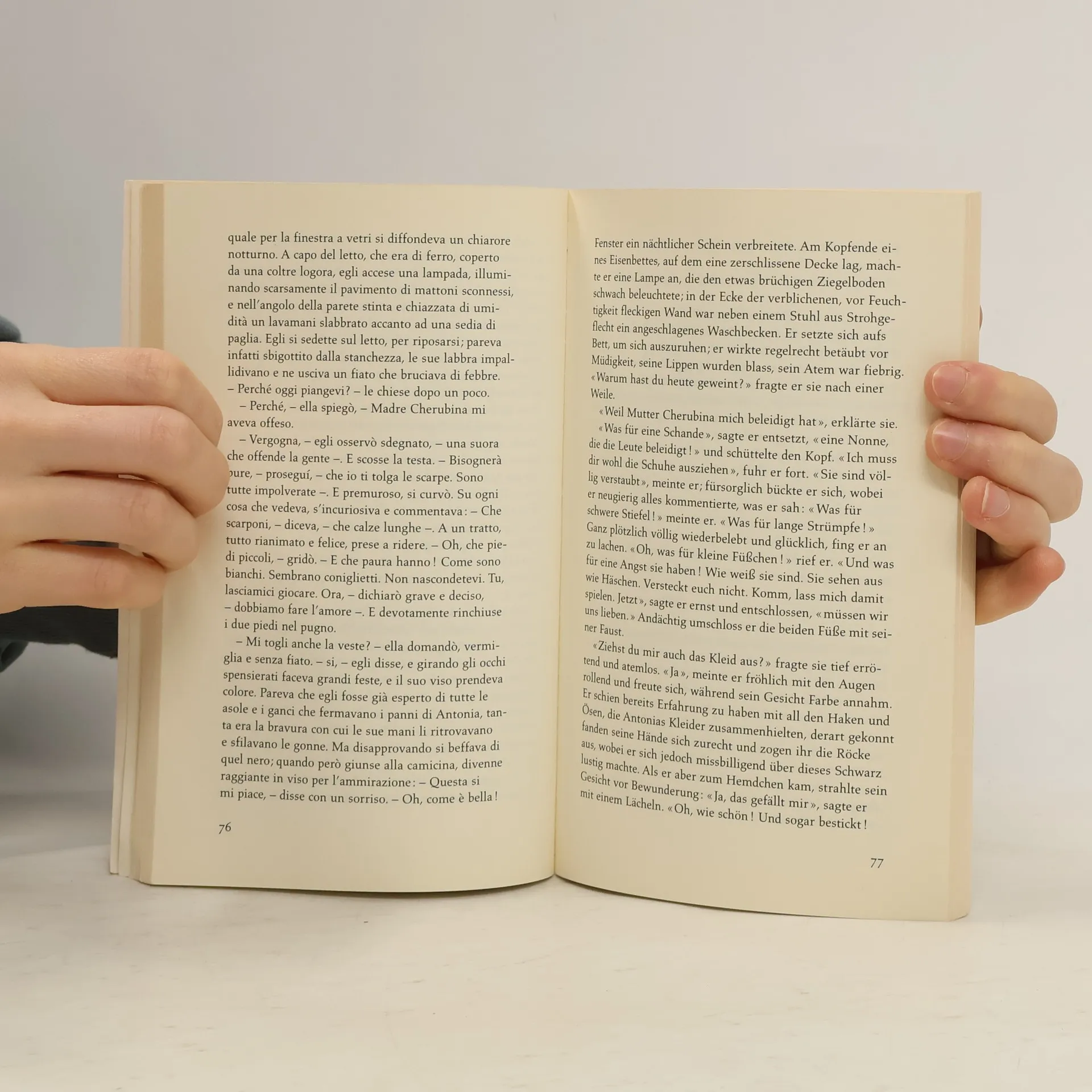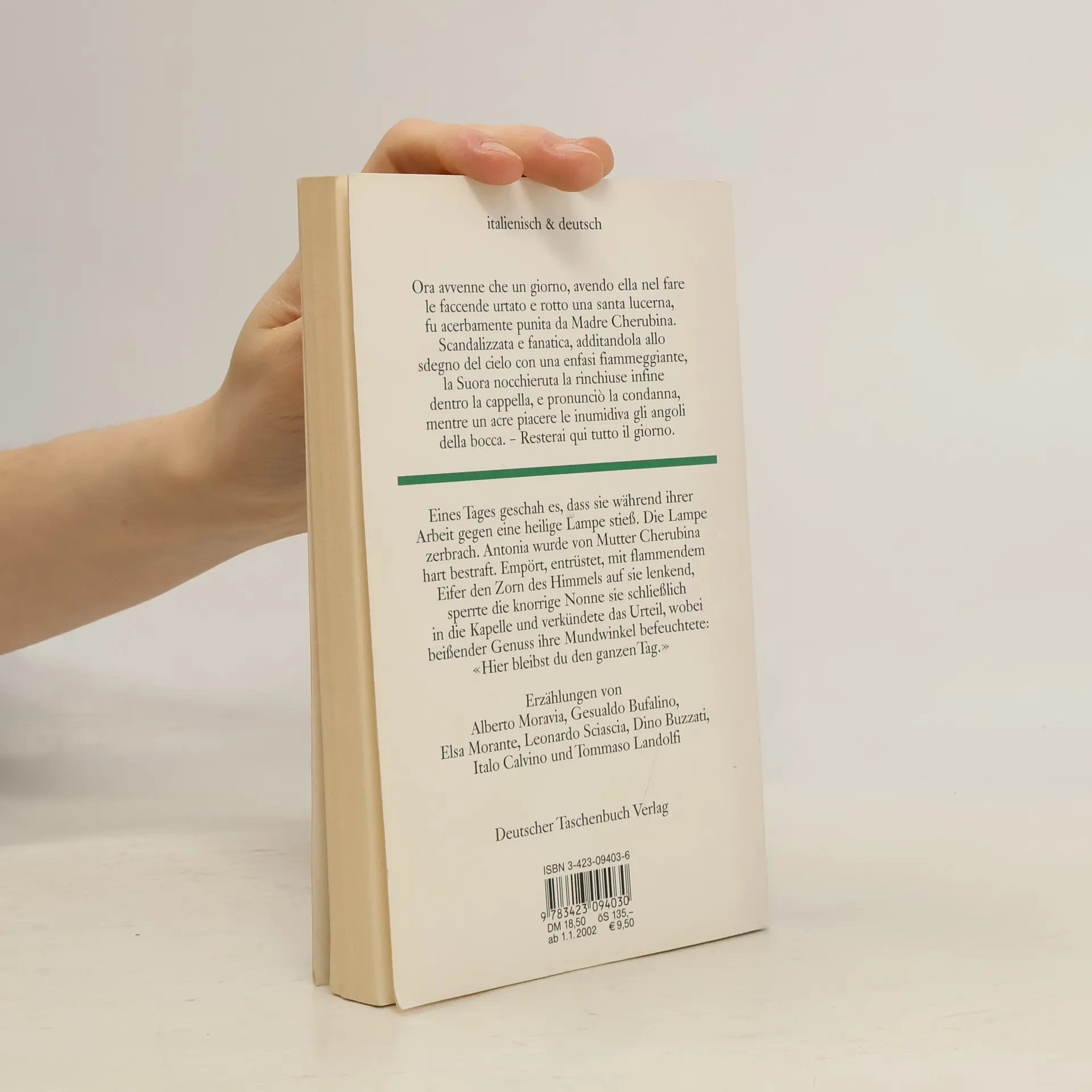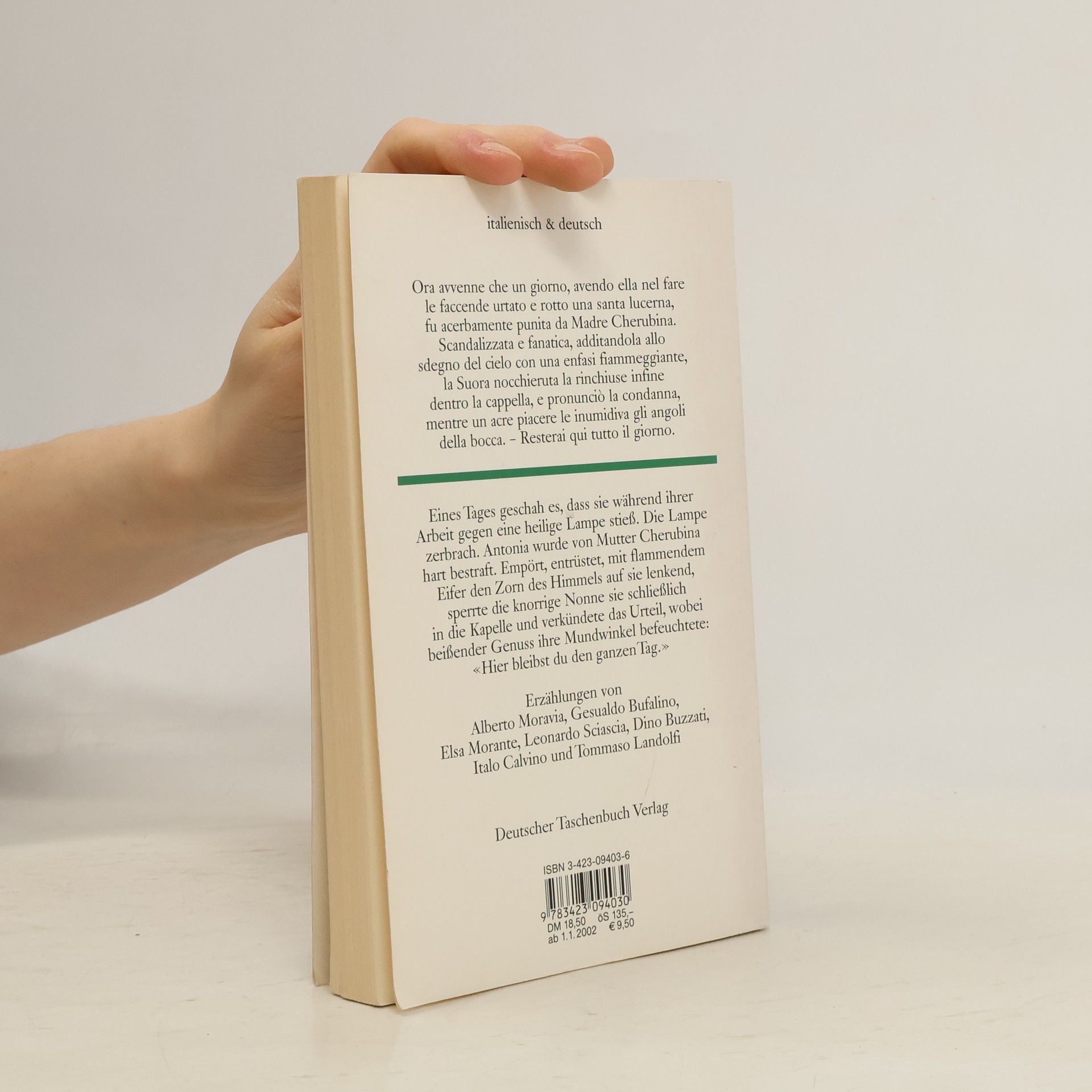 Herausgegeben von Ina-Maria Martens und Emma Viale-Stein, diese Sammlung präsentiert moderne italienische Erzählungen. In einer Geschichte besucht die Frau eines Bankangestellten die Gattin des Direktors, um von ihr zu lernen, wie man sich in feinen Kreisen verhält und was man trägt. Eine andere Erzählung zeigt einen alten kranken Mann, einen kleinen Jungen und dessen Kindermädchen, die in einem Park eine Parabel über Leben und Sterben erleben. Ein Mädchen im Kloster wird wegen einer Unachtsamkeit in die Kapelle gesperrt, wo sie eine traumhaft unschuldige Liebe entdeckt. In einer weiteren Geschichte sorgt ein Leserbrief einer Ehebrecherin für Aufregung unter den Ehemännern einer Kleinstadt, während ein seltsames Geräusch in einem Mietshaus die Bewohner irritiert. Ein genesener Patient stiehlt ein Kaninchen aus einem Labor, das als giftig gemeldet wird, was zu Verwirrung führt. Ein Mensch spürt in der Dämmerung immer deutlicher einen Kuss, bis das Leben sanft aus ihm herausgeküsst wird. Schließlich beobachtet ein Gott auf Erden malerische Szenen, hat jedoch keinen Einfluss darauf. Drei junge Männer erleben den Heiligen Abend auf unterschiedliche Weise in verschiedenen Städten.