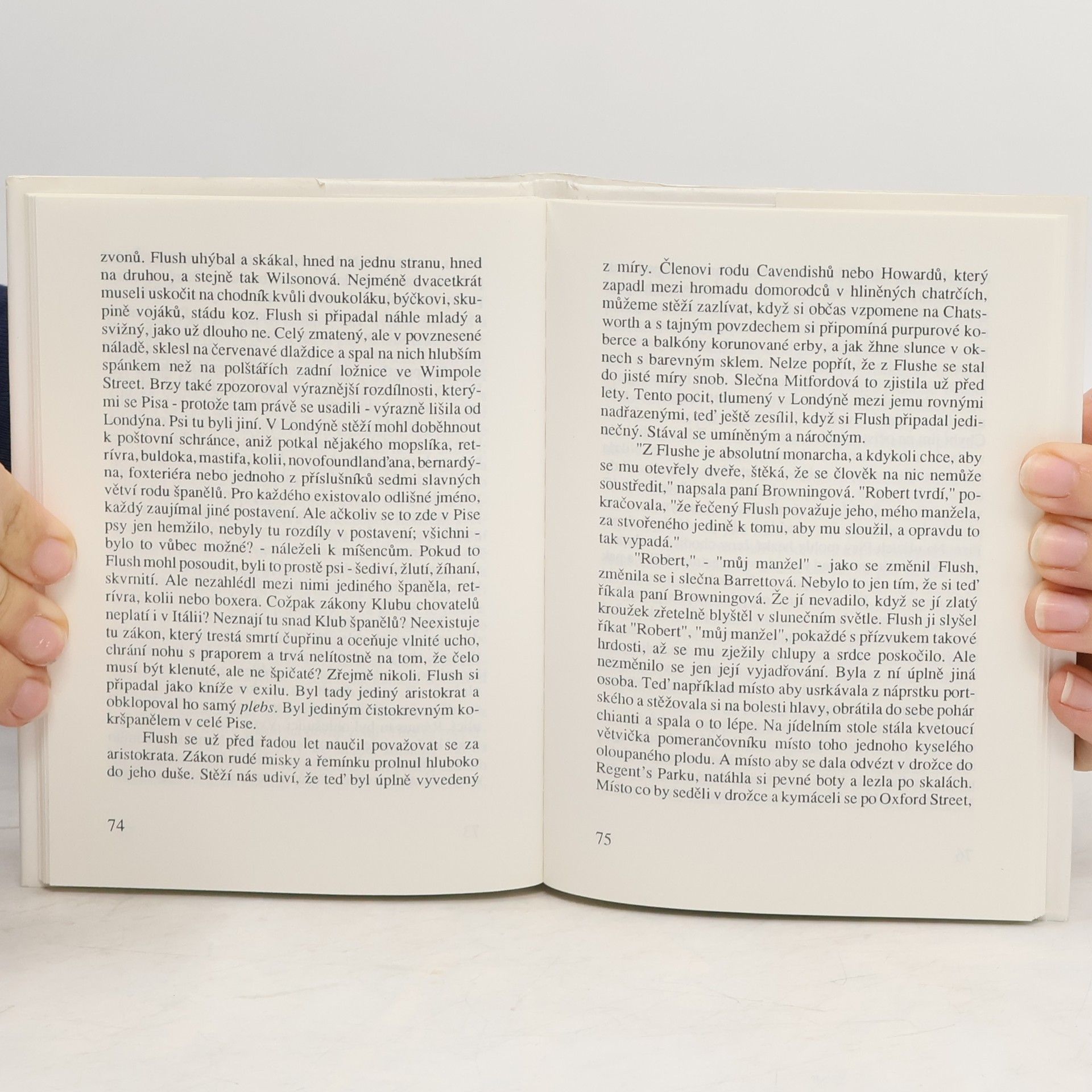 Flush: Příběh lásky a přátelství Kniha sleduje životní osudy kokršpaněla Flushe, který se už jako mladý pes dostává do přepychového domu básnířky Elizabeth Browningové (Barretové). Přichází jako dar od zchudlé rodiny Mitfordových nemocné slečně Barretové. Počáteční psův strach a stesk se promění v čistou lásku mezi Flushem a jeho novou paničkou. Flush se vzdá své svobody, procházek na čerstvém vzduchu, a to všechno jen pro ni. O to hůř nese, když se slečna Barretová zamiluje do pana Browninga...