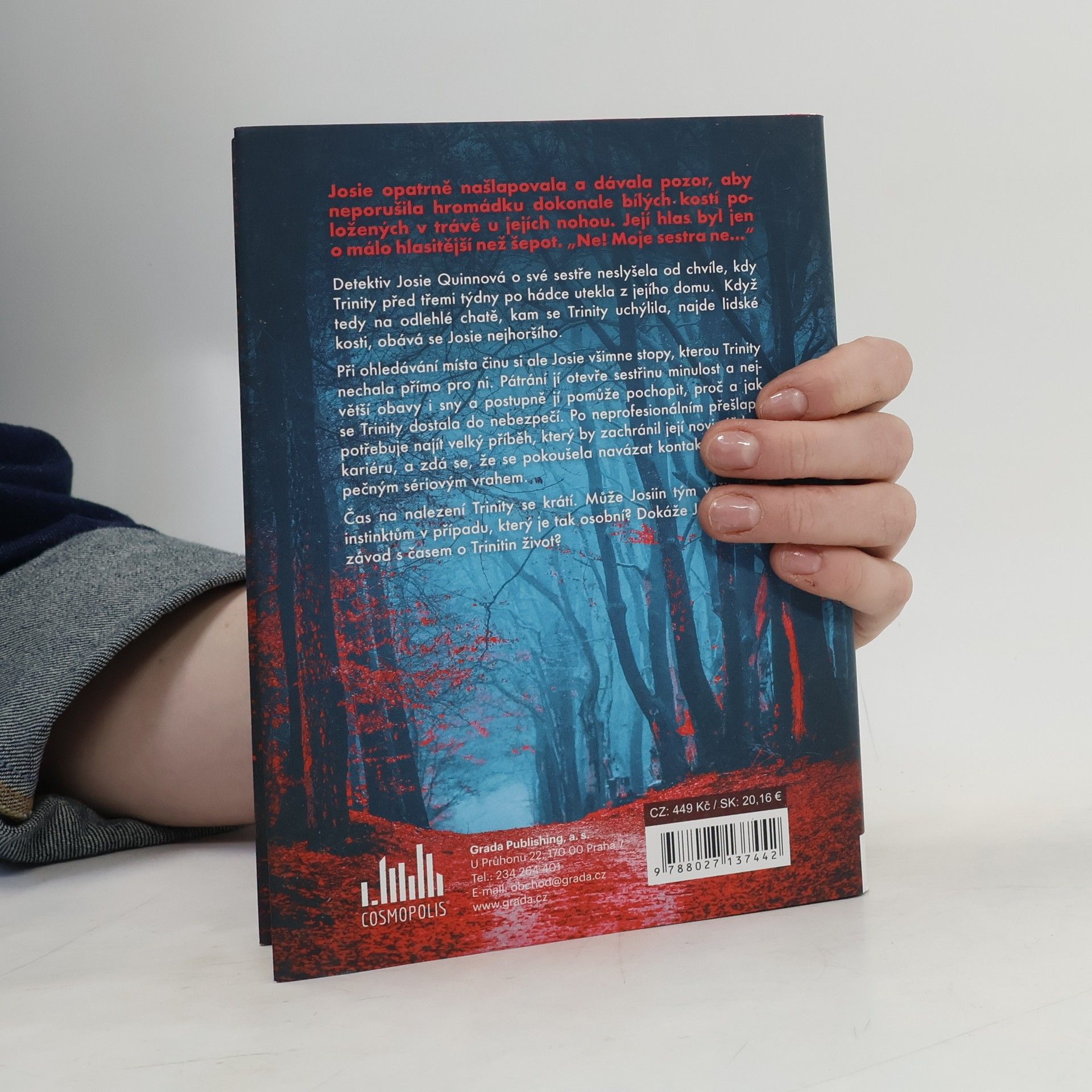 Detektiv Josie Quinnová o své sestře neslyšela od chvíle, kdy Trinity před třemi týdny po hádce utekla z jejího domu. Když tedy na odlehlé chatě, kam se Trinity uchýlila, najde lidské kosti, obává se Josie nejhoršího. Při ohledávání místa činu si ale Josie všimne stopy, kterou Trinity nechala přímo pro ni. Pátrání jí otevře sestřinu minulost a největší obavy i sny a postupně jí pomůže pochopit, proč a jak se Trinity dostala do nebezpečí. Po neprofesionálním přešlapu potřebuje najít velký příběh, který by zachránil její novinářskou kariéru, a zdá se, že se pokoušela navázat kontakt s nebezpečným sériovým vrahem. Čas na nalezení Trinity se krátí. Může Josiin tým věřit jejím instinktům v případu, který je tak osobní? Dokáže Josie vyhrát závod s časem o Trinitin život?