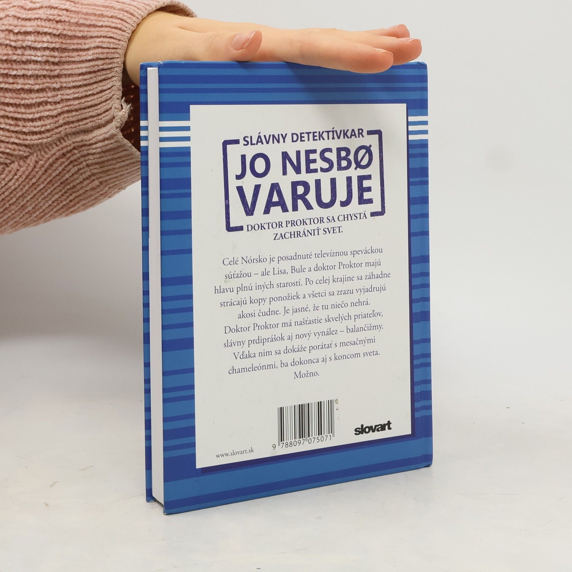 Jo Nesbo a doktor Proktor majú pre vás prichystanú ďalšiu sériu neuveriteľne šialených dobrodružstiev. Pripravte sa na inváziu mimozemšťanov, pravdu o tom, ako naozaj miznú ponožky v práčkach, na hada škrtiča v kanalizácii, na pravého žabieho muža a nie úplne pravých paviánov, na zákerné vafľovače aj nie úplne doladené balančné topánky. A navyše si dávajte pozor na sedemnohého peruánskeho vysávača, na kráľa v exile i na koniec sveta. Možno.