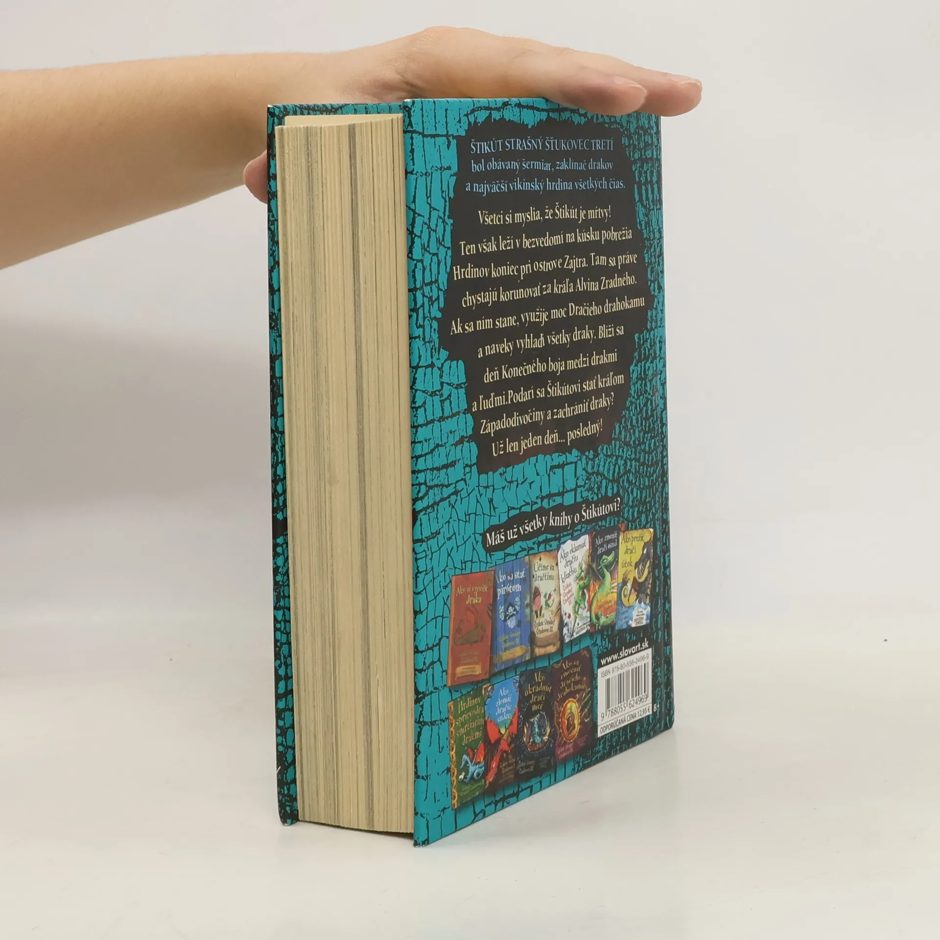 Dvanásta časť príbehov slávneho vikinského hrdinu – udatného, chrabrého a múdreho Štikúta Strašného Šťukovca III. – je posledná kniha jeho nebezpečných dobrodružstiev a pamätí. Všetci si myslia, že je Štikút mŕtvy! Ten však leží v bezvedomí na kúsku pobrežia Hrdinovho konca pri ostrove Zajtra. Tam sa práve chystajú korunovať za kráľa Alvina Zradného. Ak sa ním stane, využije moc Dračieho drahokamu a naveky vyhladí všetky draky. Blíži sa deň Konečného boja medzi drakmi a ľuďmi. Podarí sa Štikútovi stať kráľom Západodivočiny a zachrániť draky? Už len jeden deň... posledný!
