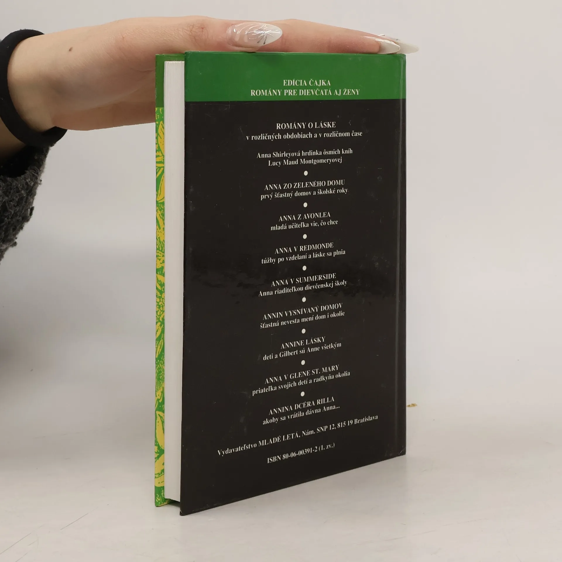 Veselé i smutné príbehy siroty Anny, ktorú si adoptujú dvaja prostí vidiečania - súrodenci Marilla a Matej Cuthbertovci. Temperamentná Anna s bohatou fantáziou a predstavivosťou spôsobí Marille a Matejovi spočiatku veľa starostí svojimi neuvedomelými výčinmi, no napokon majú z nej radosť, ich život dostane nový zmysel a čoskoro si ho už bez Anny ani nevedia predstaviť. Spisovateľka v celom rade týchto kníh naplno rozvinula svoj rozprávačský talent, fantáziu, zmysel pre humor, a tak sa Anna stáva hrdinkou všedných i nevšedných príbehov, odohrávajúcich sa na Ostrove princa Eduarda v prostredí nádhernej prírody. ISBN pro soubor (Anna zo Zeleného domu, 1994 -- Anna z Avonlea, 1994 -- Anna v Redmonde, 1994): 80-06-00390-4
